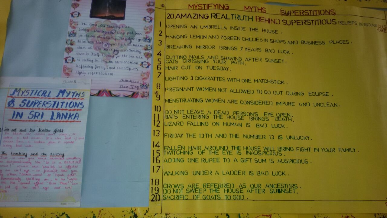 Our collaborative project - Mystifying Myths - has been successfully completed! The project began with a session in which the students, after viewing an introductory PPT, shared the common myths prevalent in their families. Thereafter, an internet based research by them proved to be an eye-opener as it led to the discovery of the scientific reasons behind many beliefs. The students also conducted a survey across different sections of the society to determine the percentage of believers & non-believers. The project witnessed a very interesting & innovative culmination in the morning assembly, in the form of a LIVE MOCK SHOW, in which the students, posing as journalists, questioned along with other students, the Principal of the school, about her belief in certain common myths prevalent in the society. They also shared their learning in the course of the project with other school students.