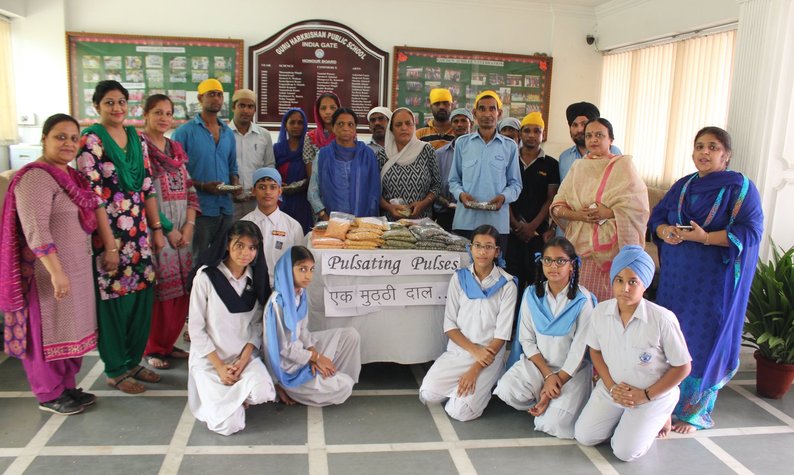 Our School registered for the prestigious International School Award (ISA) with the aim of providing broader array of cultural representation and introducing an International dimension to our Teaching learning Process. As a part of this project Pulsating Pulses a collaborative activity was taken up by the students of classes VI to VII to mark the International Year of Pulses 2016. The Objective was to encourage students to explore about food security with respect to the use of pulses in India, Australia, Kenya, UK, Sri lanka and generating awareness about their nutritional benefits. One of the activities as a part of this project was EK MUTHI DAAL wherein students of all classes of school showed their enthusiasm by bringing in a fistful of pulse of their choice. The pulses thus collected were packaged by the children and distributed among the support/ ancillary staff of the school on 2 Aug 2016 in the school premises.