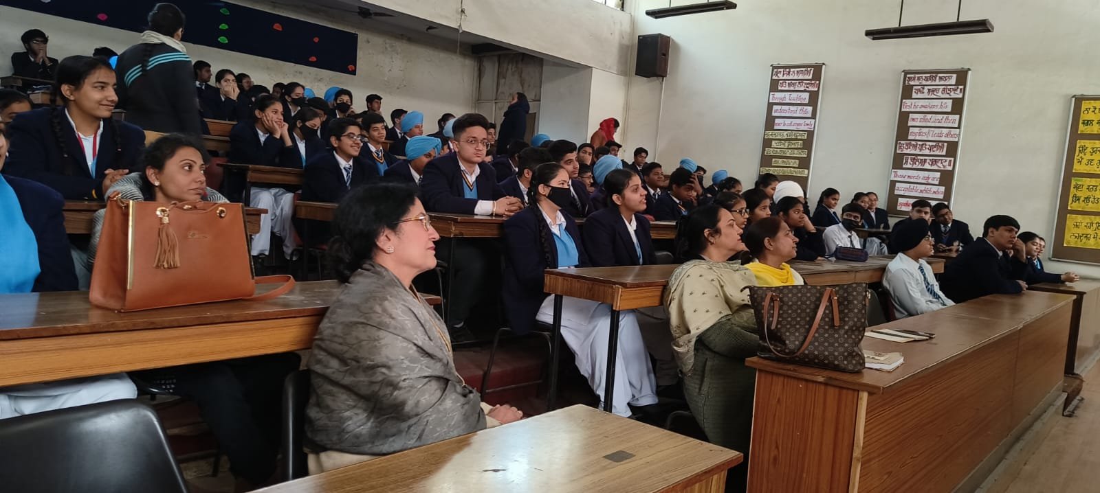A live- viewing of the programme PARIKSHA PE CHARCHA 2023 from Talkatora Stadium , was arranged for the students of Classes IX- XII in School's Conference Room with proper Audio& Video equipments( Laptop, Projector& Screen)on 27 January 2023. The programme was attendedby the School Principal , Ms Mandeep Kaur,Faculties & students.During the session, students raised their queries about various distractions& challenges they are facing during the examination.In this live telecast, PMNarendra Modi answered all questions posed by students from all over India thereby motivating each student to do their best & leaving exam stress & nervousness behind.It was an enlightening & effective session for our students .