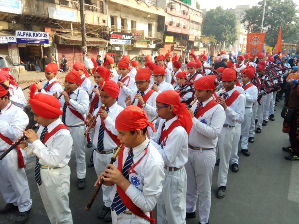 The Principal,Staff &Students participated in the Nagar Kirtan organised by Delhi Sikh Gurudwara Management Committee, on 29November 2022, to commemorate the Martyrdom Day of the ninth Sikh Guru, Shri Guru Tegh Bahadur Sahibji. The procession, which included school children,decorated horses, elephants, gatka parties & shabdi jathas, started from Gurudwara SisGanj Sahib,Chandni Chowk& accompanying Shri Guru Granth Sahibji decorated in Palki Sahib, terminated at Gurudwara Rakab Ganj Sahib in the evening. The School Band not only displayed fine skills & coordination but also showed great aplomb & religious fervor during the procession which attracted the attention of all the passers-by & devotees.