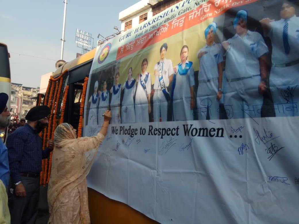 Shri Guru Teg Bahadur Nagar kirtan, the religious procession, under the aegis of the Delhi Sikh Gurdwara Management Committee, was organised on Wednesday 12th December 2018. The Nagar Kirtan commenced from Gurdwara Sis Ganj Sahib, Old Delhi and terminated at Gurdwara Rakab Ganj Sahib, New Delhi. All the branches of GHPS and other Sikh schools were part of this religious procession. Class 10 students and prefects of classes 11 and 12 of our school marched in the Nagar Kirtan Engulfed with festive gaiety, the students and teachers travelled a few kilometres across the city carrying placards with different slogans to save Mother Earth and teachings of Guru Ji. A signature campaign appealing Respect for Women was also carried out.