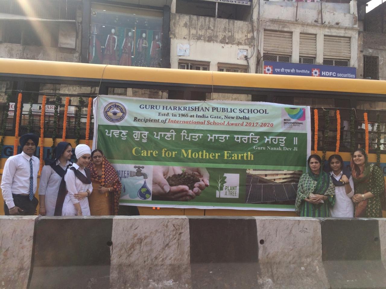 Shri Guru Teg Bahadur Nagar kirtan, the religious procession, under the aegis of the Delhi Sikh Gurdwara Management Committee, was organised on Wednesday 1 st December 2019. The Nagar Kirtan commenced from Gurdwara Sis Ganj Sahib, Old Delhi and terminated at Gurdwara Rakab Ganj Sahib, New Delhi. All the branches of GHPS and other Sikh schools were part of this religious procession. Class 10 students and prefects of classes 11 and 12 of our school marched in the Nagar Kirtan Engulfed with festive gaiety, the students and teachers travelled a few kilometres across the city carrying placards with different slogans to save Mother Earth and teachings of Guru Ji.