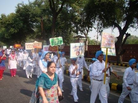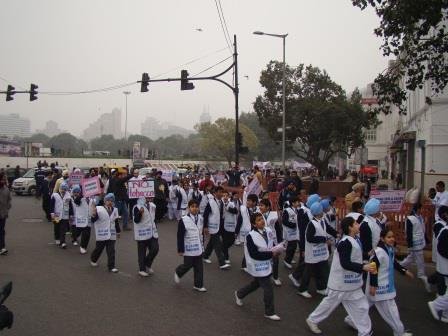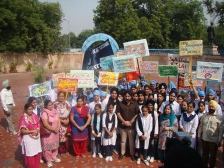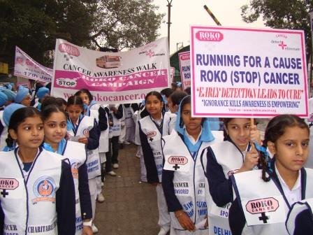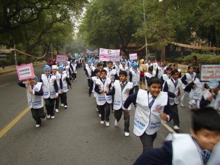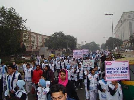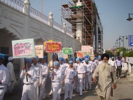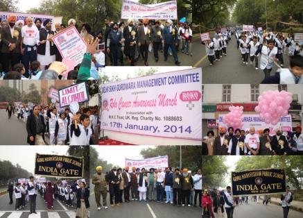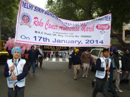 DSGMC organised Cancer Awareness March on Friday, 17 January 2014. The students from classes VI to IX participated in the march. DSGMC President S. Manjit Singh (G.K) flagged off the march from Gurudwara Bangla Sahib. The procession went from Gurudwara Bangla Sahib to Gurudwara Rakab Ganj Sahib via Connaught place. Students carried placards and distributed pamphlets on the way to create awareness about cancer. The students assembled in Lakhi Shah Wanjara Hall. S.Kulwant Singh Dhariwal and Mr Chawla who have started the mission of eradicating cancer motivated the students with inspiring speeches DSGMC has joined hands with them to support this Noble cause.
