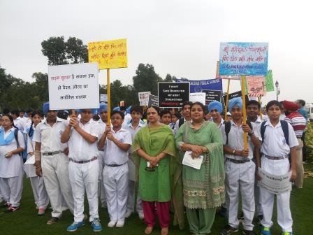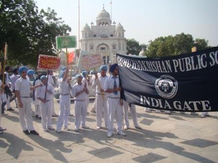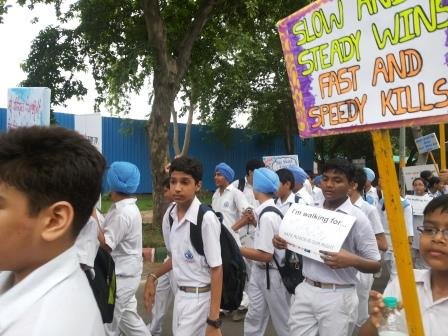The students of Guru Harkrishan Public School, India Gate celebration the Prakash Utsav of the founder Guru with a difference. Bala Pritam Guru Harkrishan Sahib Ji a symbol of charity, patience and love for all, left for heavenly abode at a tender age of under 8 years removing the ailments of the people of Delhi. GHPSians taking light from the life of Guru Harkrishan Sahib ji joined hands with COLORS(Coalition for Road Safety ) on His Prakash Utsav trying to bring peace to the society by participating in a peaceful walk to sensitise the society in general about the need for safer roads. The students carried emotional placards echoing the need of the children for their families to be safe. This Walkathon is in the wake of an increasing number of accidents caused due to negligent reckless driving and disregard for traffic rules. Celebrating its Golden Jubilee, the school proposes to carry out social outreach programmes around the year.