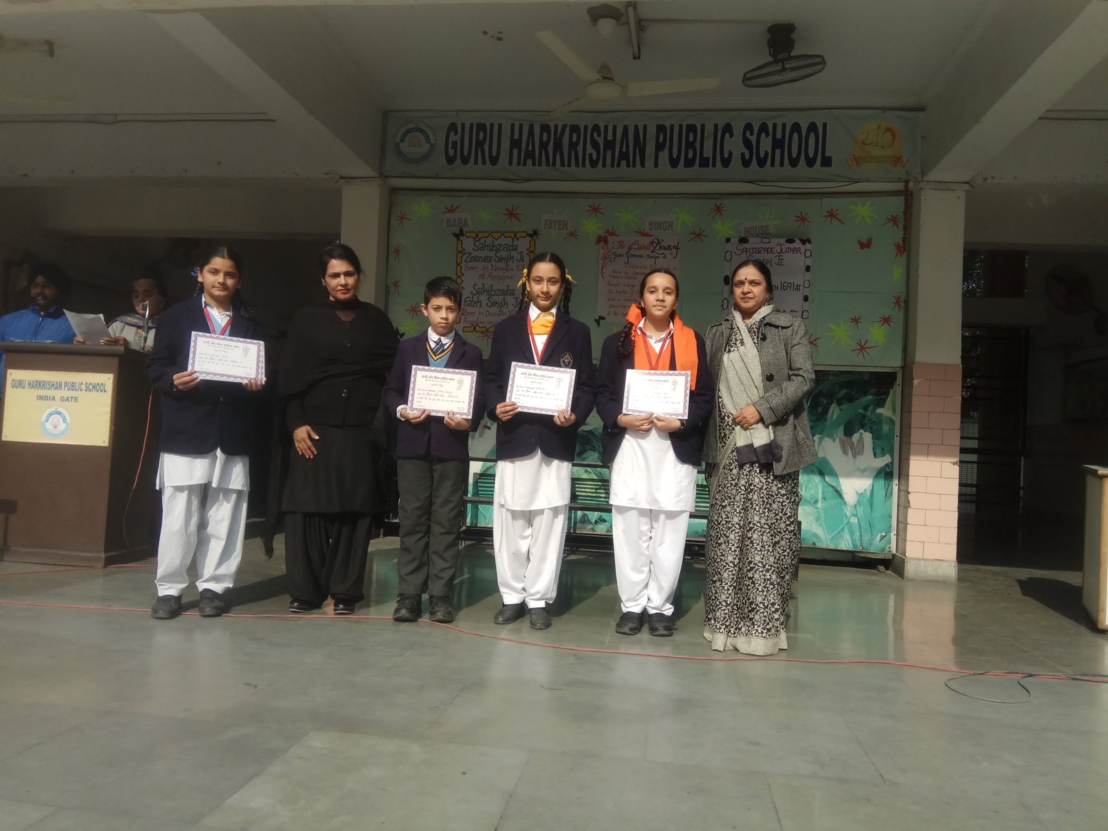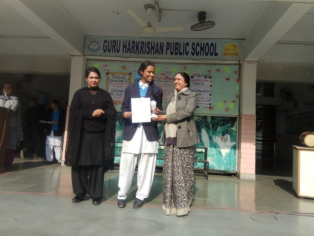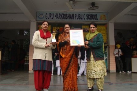 The Principal Ms. Mandeep Kaur and the Headmistress Ms.Gurmeet Kaur Virdi gave away certificates to the winners of various Inter House Competitions.