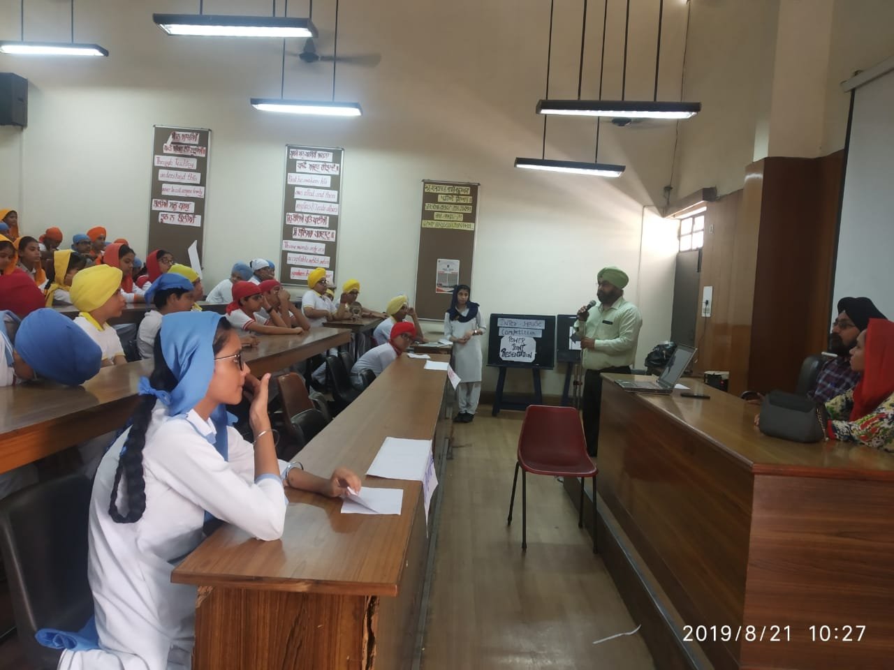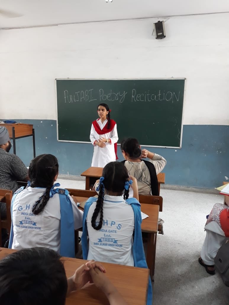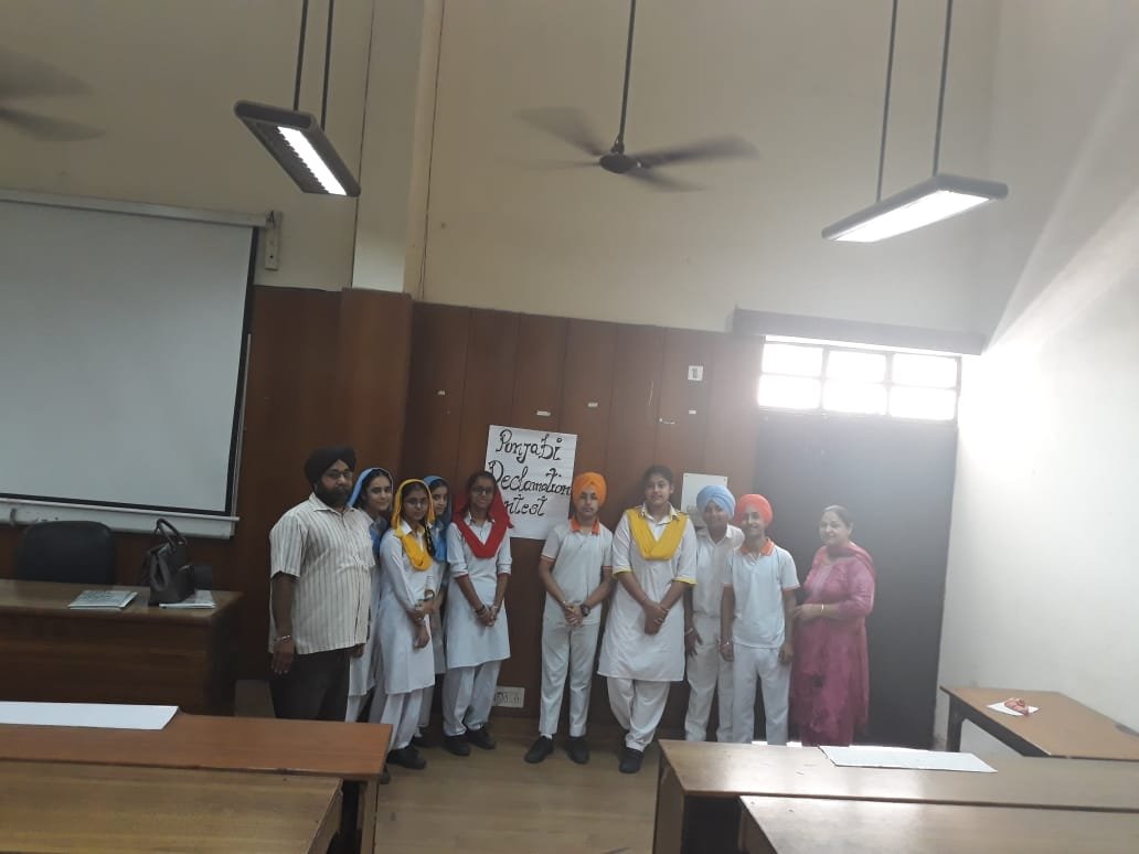 Inter-House Punjabi Declamation Contest from classes 8 to 9 was held on 28 August 2019. 4 Students were taken from each house. The topics of the competition were-