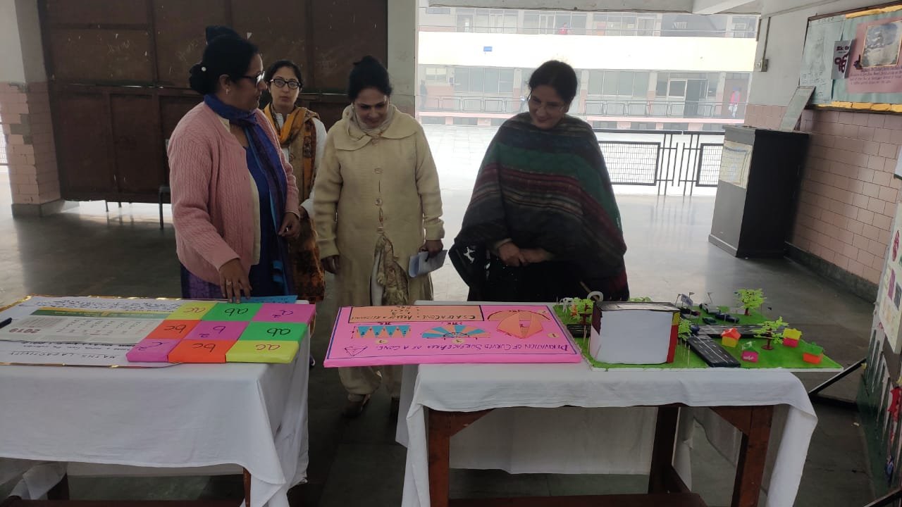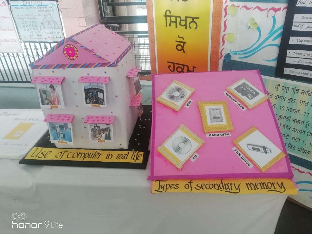A combined exhibition by Mathematics and Computer Department of the school was organised in the school premises on 20th December 2019. It depicted various concepts of Maths in a simple and easy learning ways which included areas of cross roads, interesting calendar patterns, properties of a circle, relationship between circumference and diameter of a circle.The following models were prepared by the students for computer exhibition- uses of computer in real life, types of storage devices, evolution of computer, execution of program. Charts were also prepared depicting measures to avoid cyber crime for parents and children