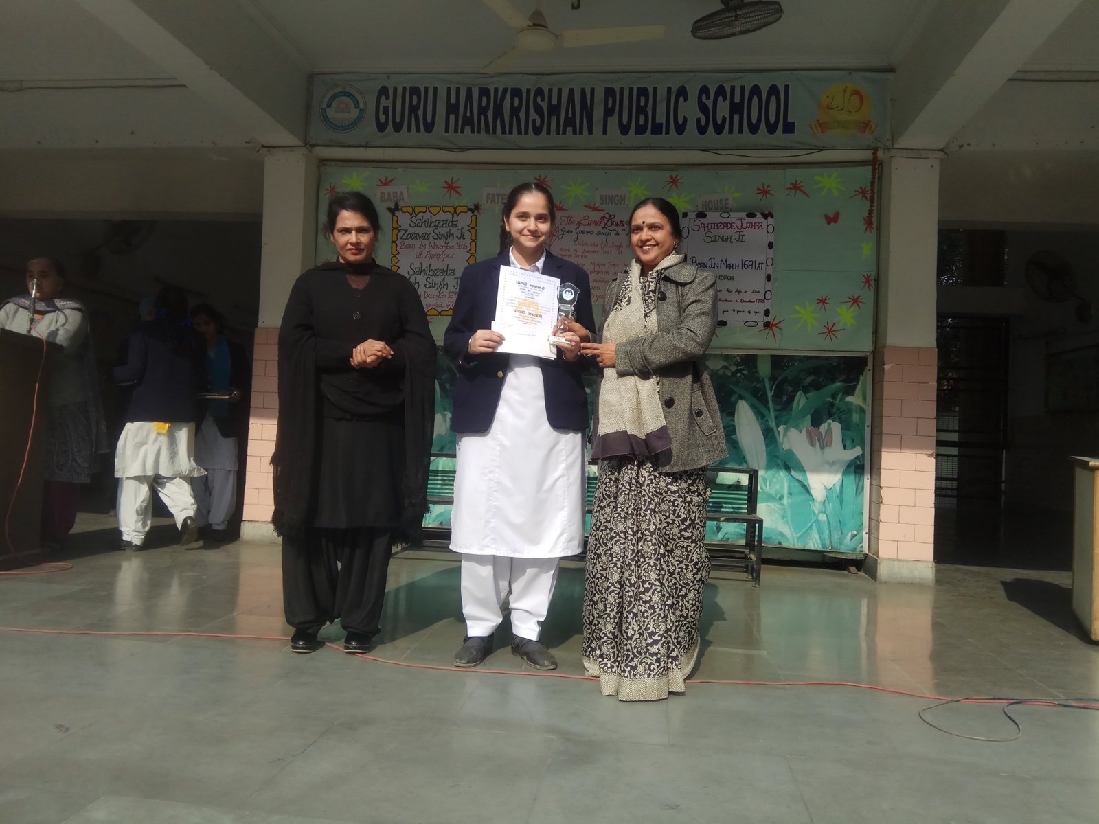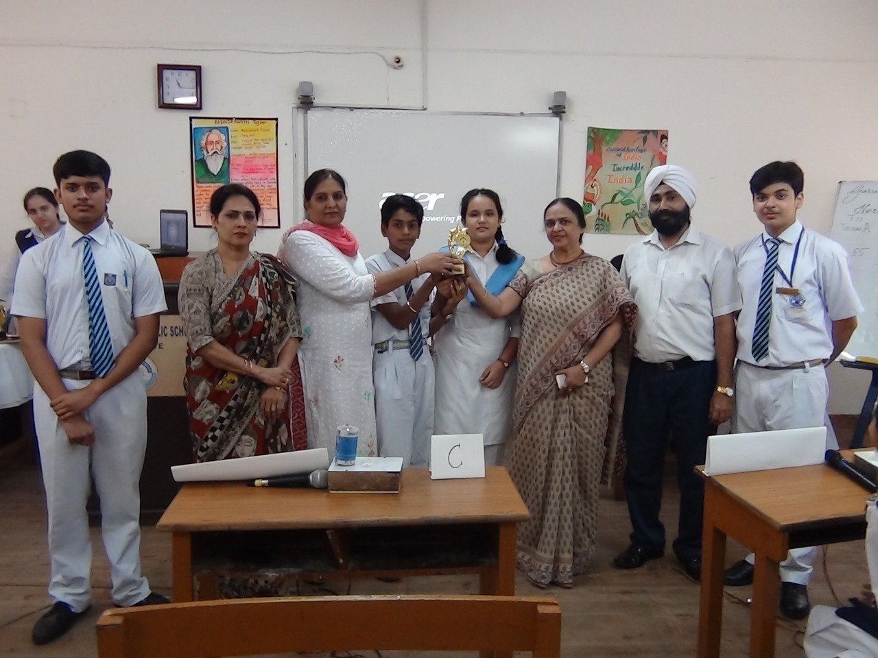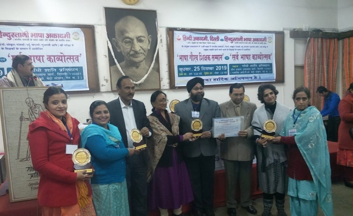 To promote Indian Culture, Hindi Academy Delhi organised a program Bhasha Gaurav Shikshak Samman on 25th December 2019. It honoured the students who scored A1 grade and the Teachers who put in lot of efforts so that children could achieve the target. Teachers teaching all the Indian languages which are included in India's constitution were awarded with certificate and trophy. They are : Ms. Sarabjit Kaur(Hindi), S. Jagjit Singh (Punjabi) Ms. Manpreetika Kaur(Hindi) and Ms. Maninder Kaur (Punjabi).