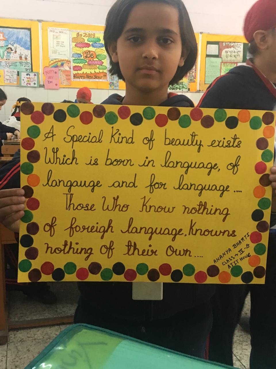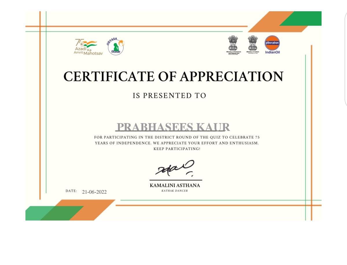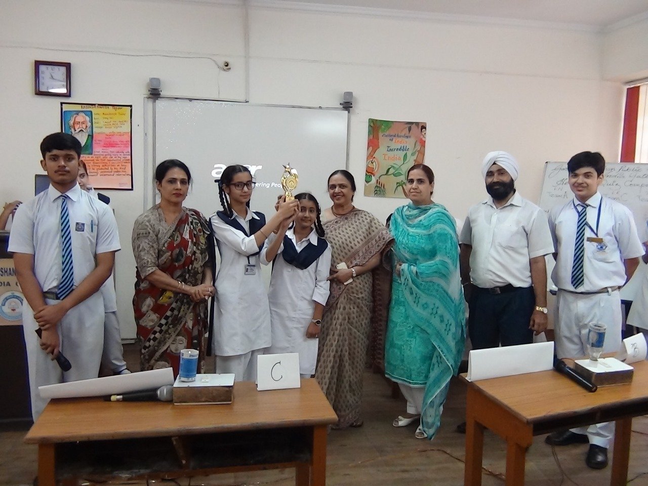 To promote Indian Culture, Hindi Academy Delhi organised a program Bhasha Gaurav Shikshak Samman on 25th December 2019. It honoured the students who scored A1 grade and the Teachers who put in lot of efforts so that children could achieve the target. Teachers teaching all the Indian languages which are included in India's constitution were awarded with certificate and trophy. They are : Ms. Sarabjit Kaur(Hindi), S. Jagjit Singh (Punjabi) Ms. Manpreetika Kaur(Hindi) and Ms. Maninder Kaur (Punjabi).