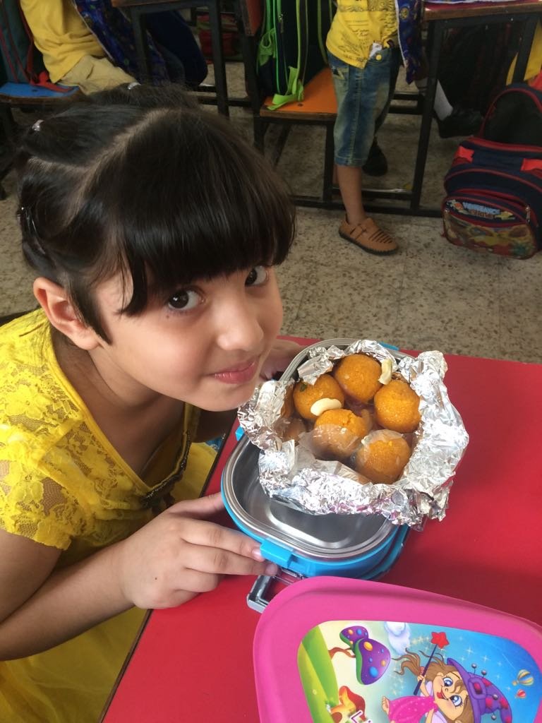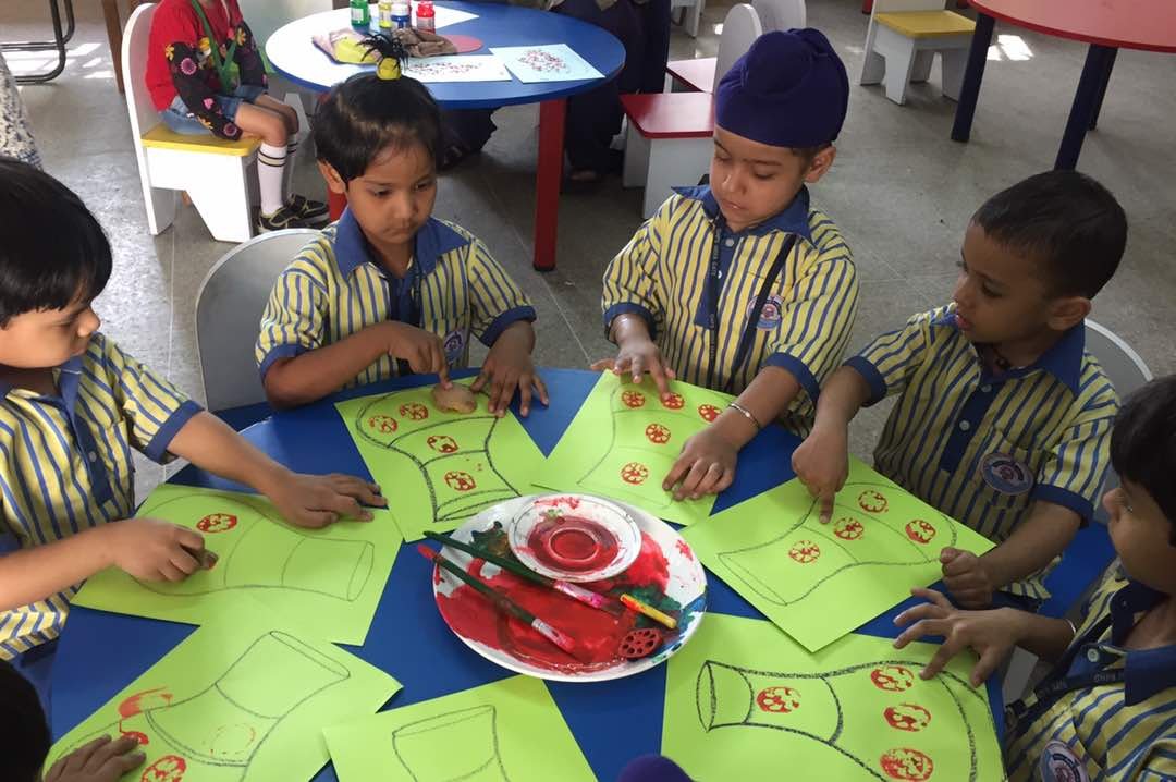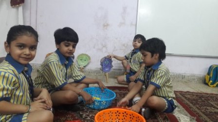 For Diwali celebration in school, Nursery class children made cards for their parents with diya and candles depicted the festival of lights. Diwali celebration was great excitement for the children as they got sweets and eatables from home to celebrate it together.