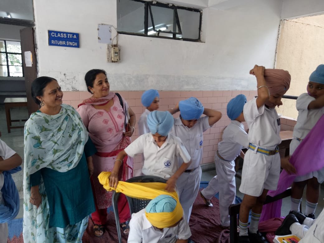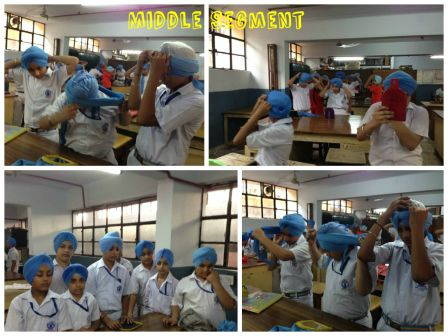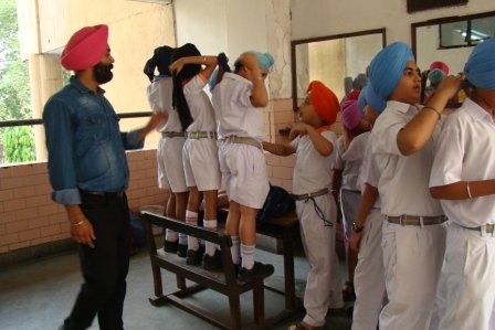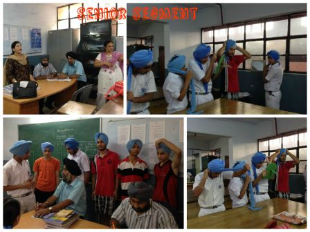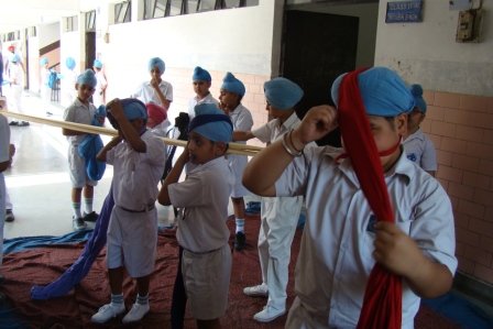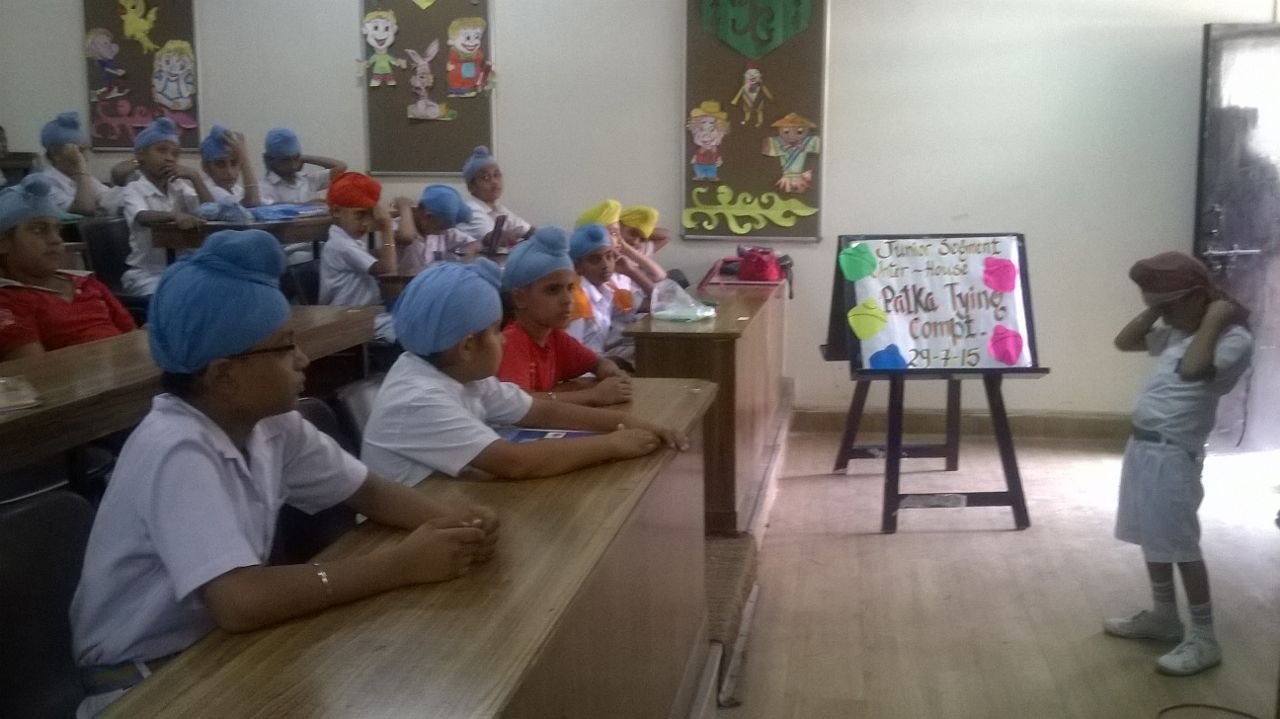 Keeping sikh tradition and values in mind Patka Tying Competition for primary classes and Turban Tying Competition for middle and senior segment of the school was held in school premises on 30 July 2014. Students were judged on the basis of speed and neatness and their knowledge of Divinity. Students participated with complete dedication and sincerity.