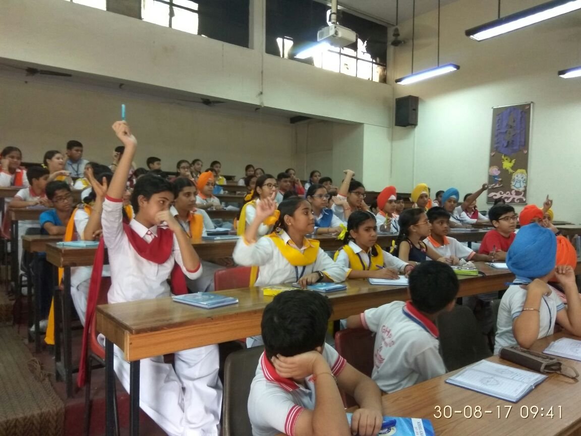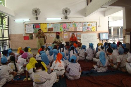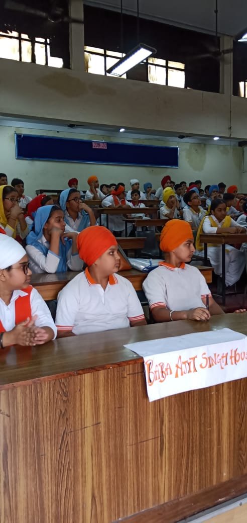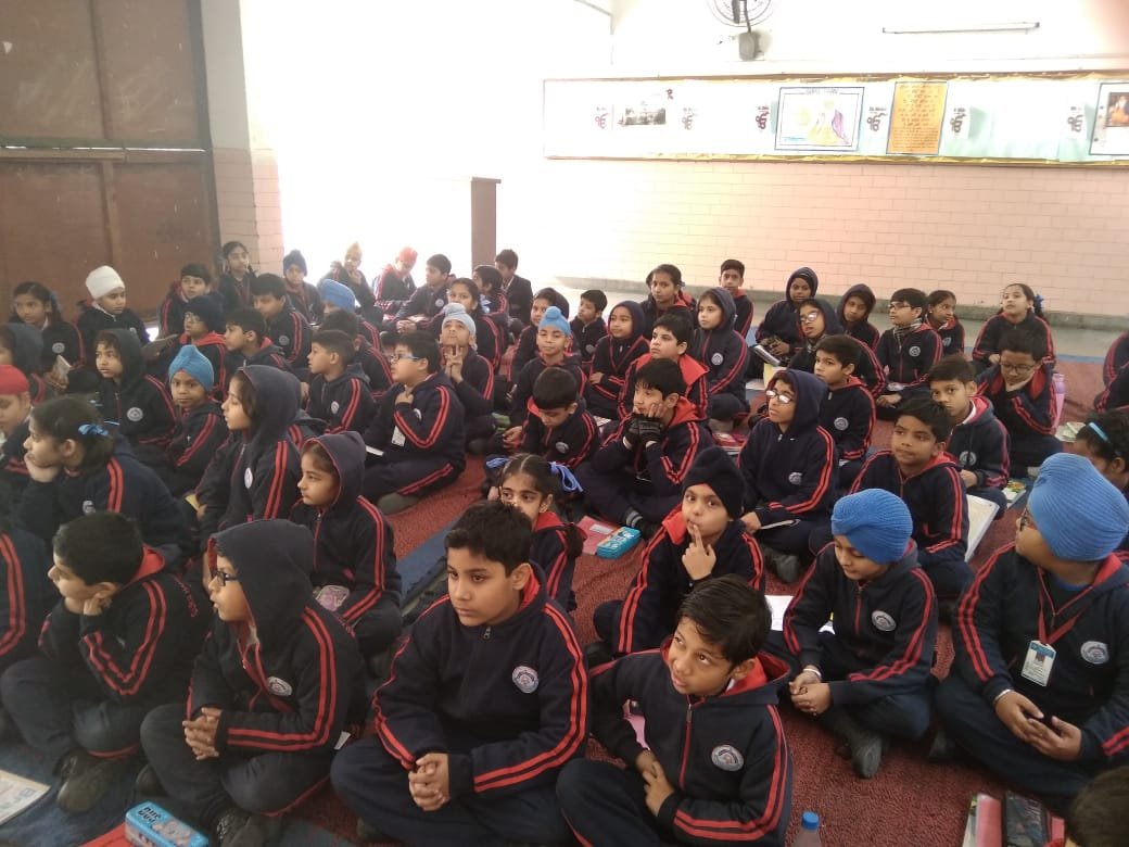 To commemorate 550th birth anniversary of Guru Nanak Dev ji, Dharam Prachar Committee of Delhi Sikh Gurudwara Managenment Committee launched an initiative in which students of classes 6, 7 and 8 were shown Sakhis of Guruji. The audio visuals were used to spread awareness about the principles and teaching of Guruji. The students learnt about the various messages given by Guru Nanak Dev ji to spread humanity, brotherhood and to remain away from superstitions and evils. The occasion was graced by the presence of the chairman of Dharam Prachar Committee, S. Joginder Pal Singh Goldy who enlightened the students about the teaching of Guruji and importance of spiritual education. Quiz was conducted after each session and prizes were given away to the winners. It was an enriching experience for all.