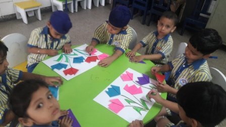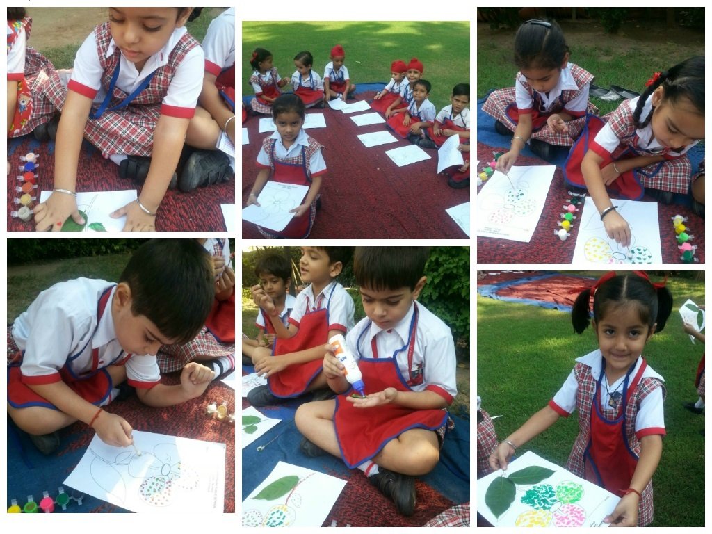 This year Nursery is working on a Project named Blooming Flowers.In this Project Nursery will do one activity every month, related to flowers. 1st activity Bud Painting was done on 9st october 2014. Children used buds to paint a flower. They were free to use their own imagination using the colours according to their own choice. The vibrant colour flowers turned out very beautiful. This activity was done in natural surrounding. Children were taken to the school lawn to feel closer to the nature. Children did this activity with great enthusiasm and enjoyed a lot.