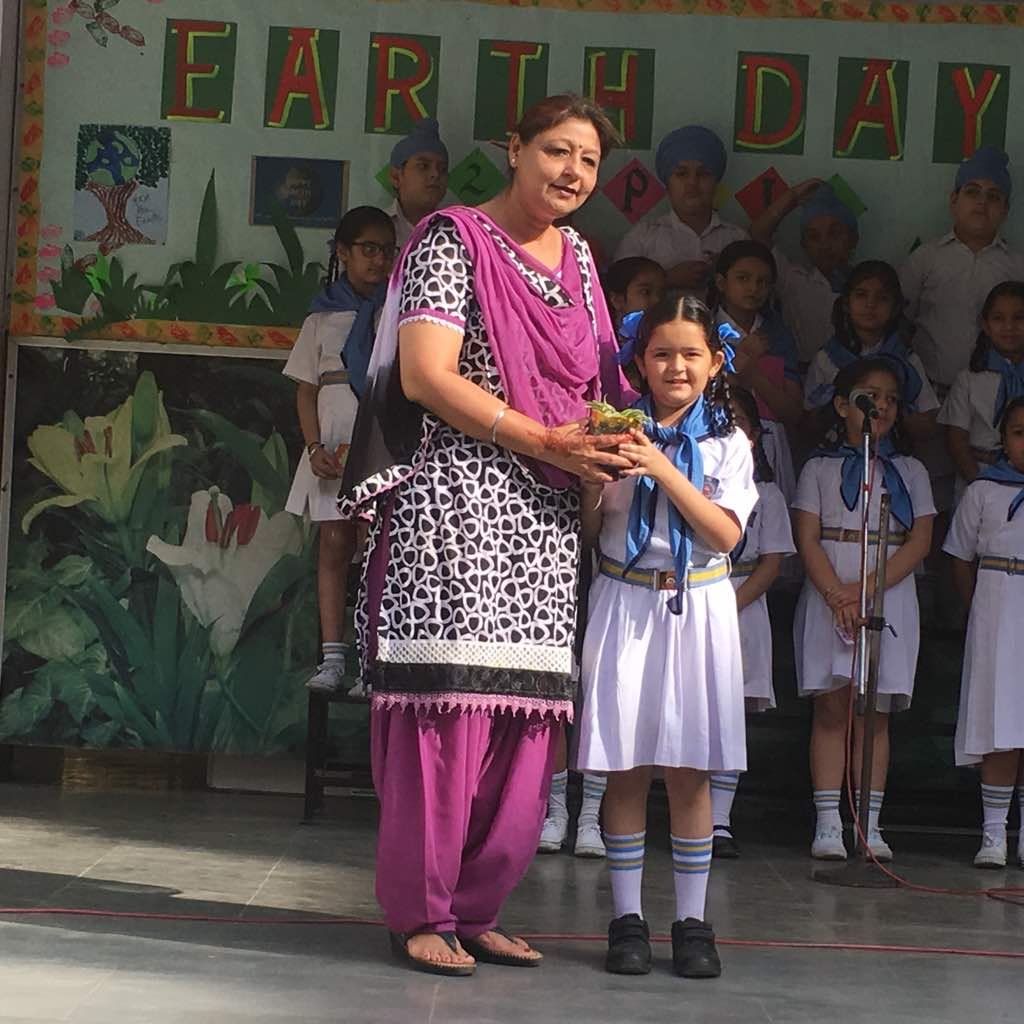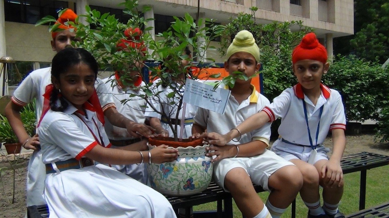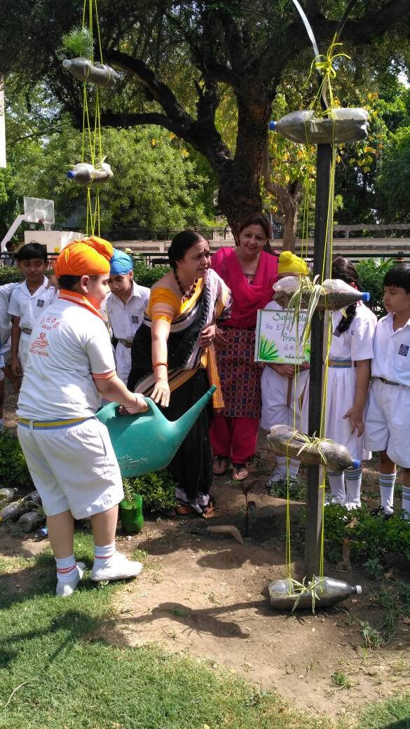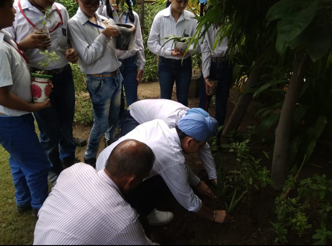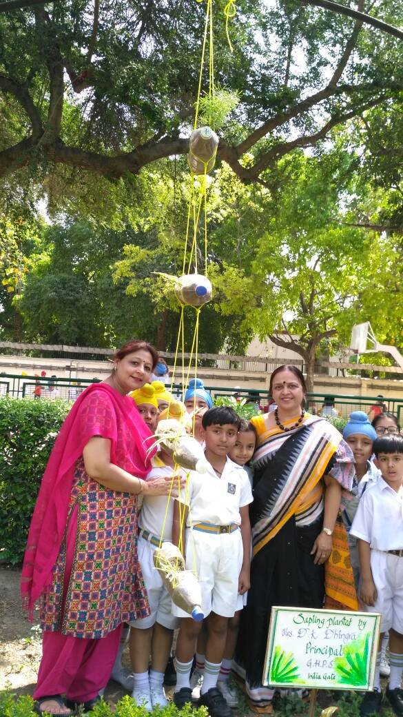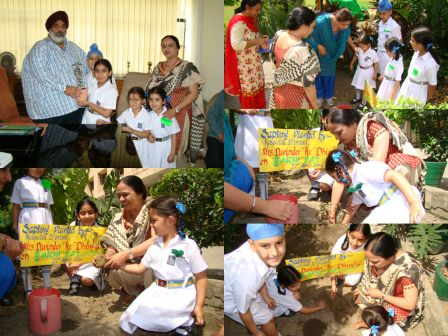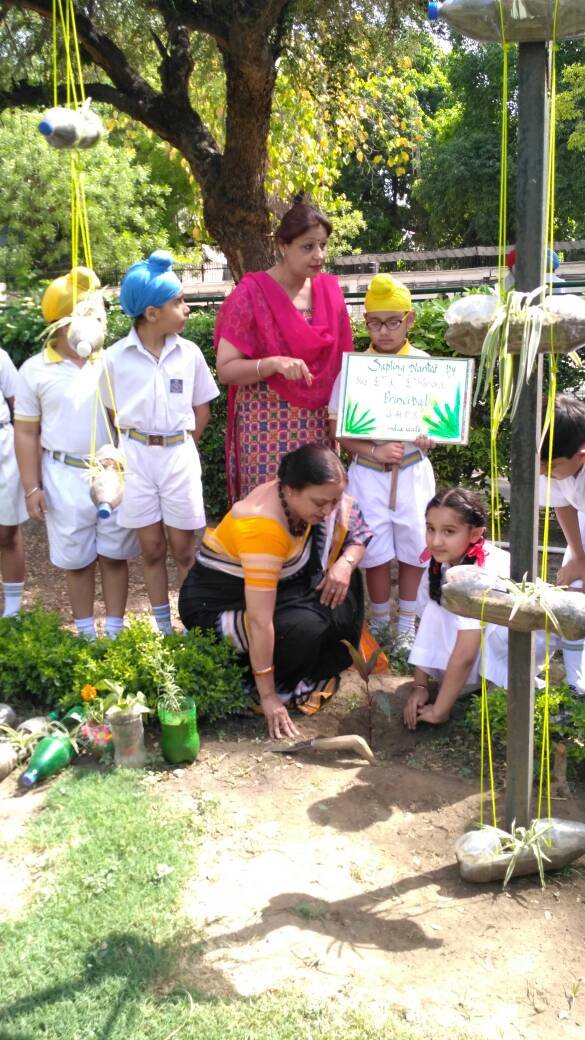 1. The Principal Mrs Davinderjeet Kaur Dhingra planted a sapling in the garden.