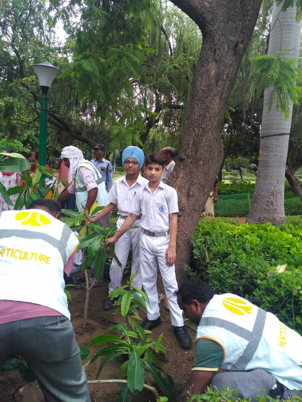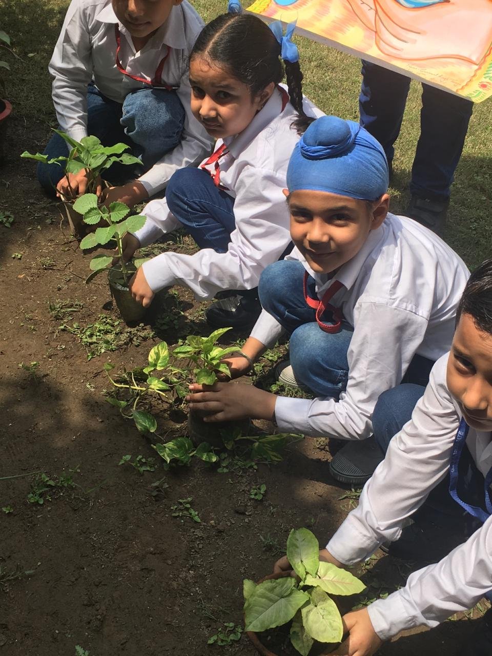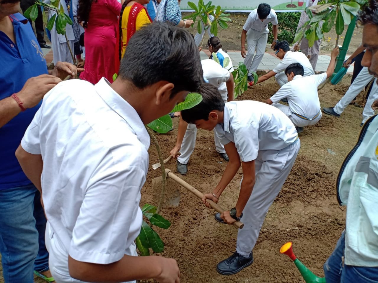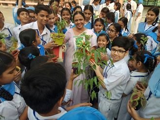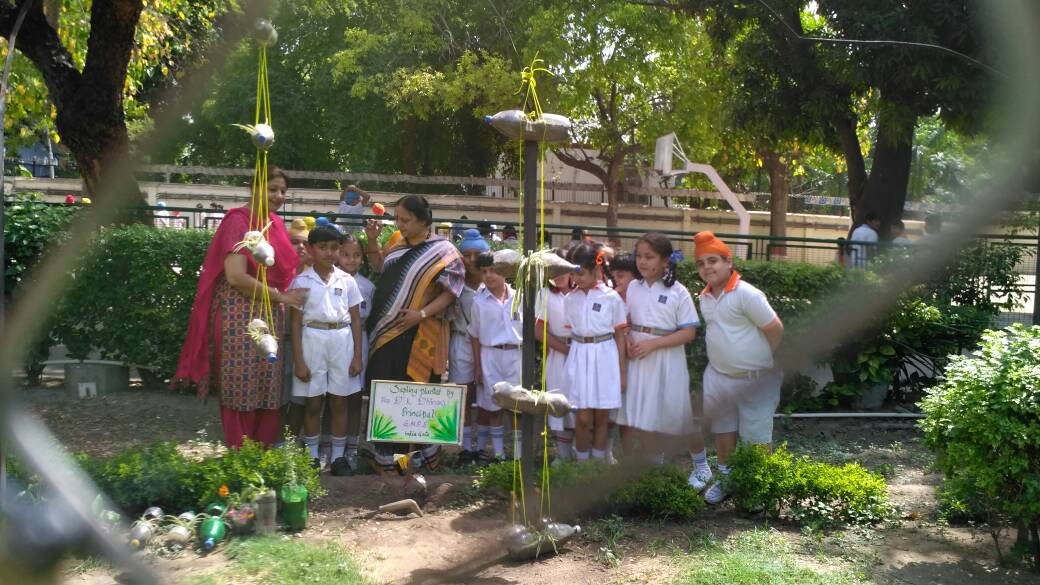 1. The Principal Mrs Davinderjeet Kaur Dhingra planted a sapling in the garden.