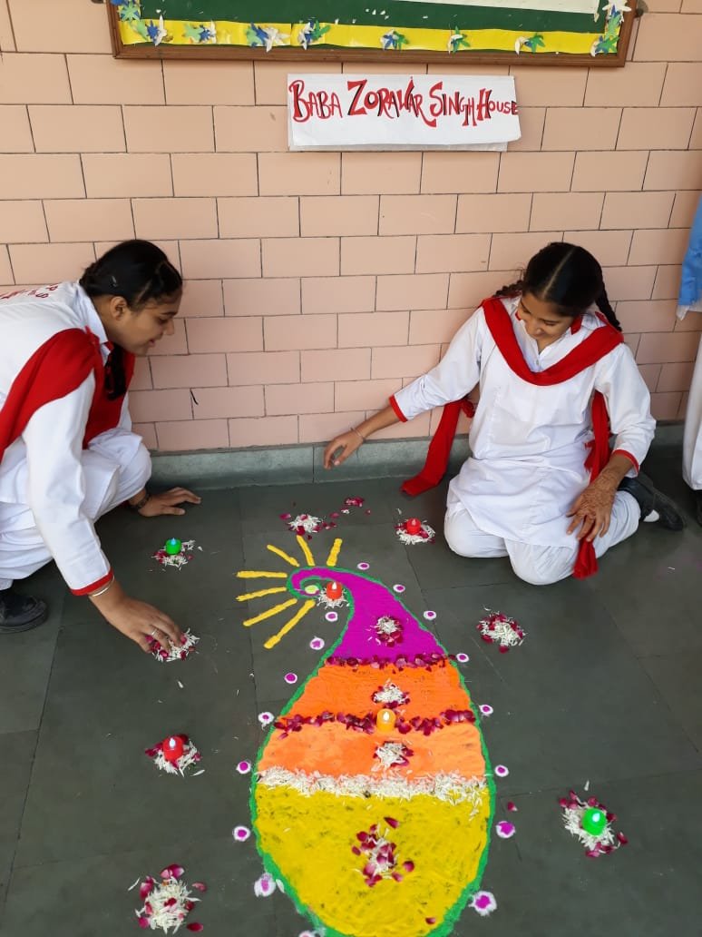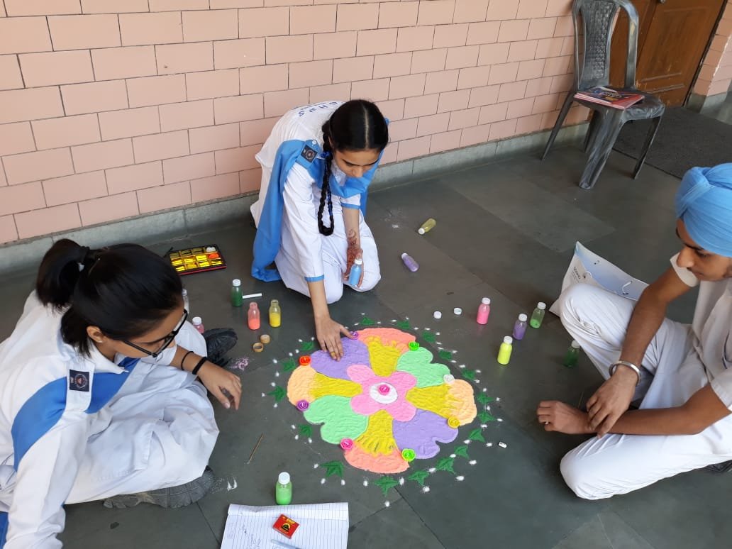 An Inter-House Rangoli Competition was held in the school on 23rd October 2019. First position and second position were bagged by Baba Jujhar Singh House and Baba Zorwar Singh House respectively.