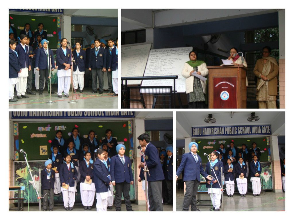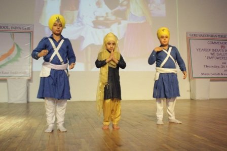 Guru Harkrishan Public school, India Gate observed World Minorities Day in the morning assembly with a dedicated aim to make the students aware of the rights of the minorities. Talks, presentations and Punjabi folk songs sung by the students marked the day. The Principal of the school, Ms. D.K. Dhingra, applauded the efforts of the children and emphasized the importance of being an aware and well-read citizen. She also highlighted that the Sikh minority that added up to a meagre 2.4% of the total Indian population contributed a whopping 75% to the country,s growth in diverse fields like defence, agriculture etc.