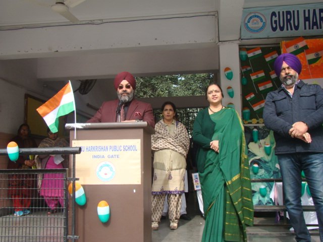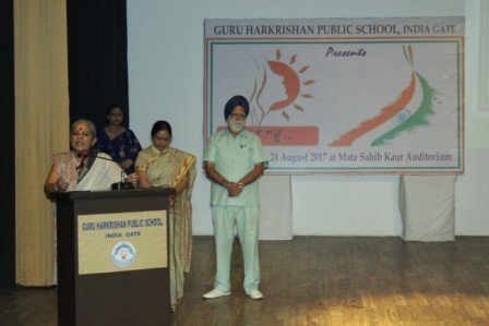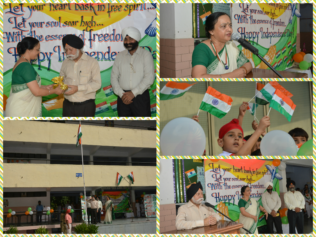 New Delhi. 15 August Independence Day, the most revered day for all Indians was celebrated with great patriotic fervour, gaiety and gusto at Guru Harkrishan Public School, India Gate in the benign presence of the school Manager, S. Kulmohan Singhji the Chief Guest for the day. This 68th Independence Day Sangram e Azadi commenced with unfurling of the Tricolour our National Flag followed by National Anthem. The Guard of Honour was presented by NCC Cadets and School Band to all the esteemed guests. The entire environment seeped with the songs of patriotism presented by junior & senior segment students. A Presentation depicting India s freedom Struggle from 1857 to 1947 was showcased by senior students, thus saluting the heroes the great martyrs for their supreme sacrifices and attainment of the most valued Freedom. The Chief Guest for the day congratulated all, on this great day. He commended the students for their national sprit and guided them how hard earned freedom, unity and integrity had to be safeguarded and kept intact He also articulated on the role and responsibilities of the Sikh youth and true nationalistic spirit. The School Principal Mrs. Davinderjeet Kaur Dhingra appreciated the performance of the students, concluded the programme by conveying the message on truth, spirit of oneness and peace. She also emphasised on Cleanliness Drive Clean and Green Delhi followed by the vote of thanks. .