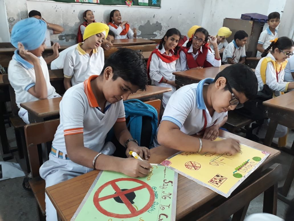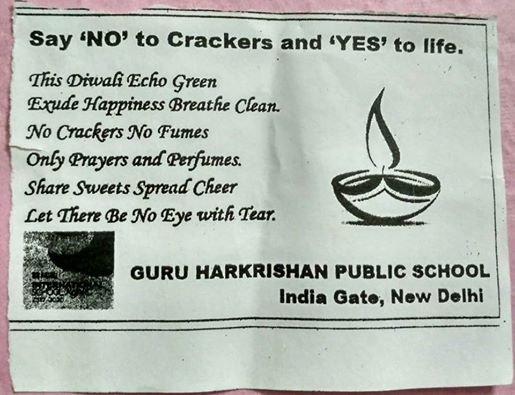 The students of GHPS,INDIA GATE,celebrated eco friendly Diwali by ' Saying No to Crackers'. Students from all classes participated enthusiastically in the 'Green Diwali Week' by making colourful rangolis, writing creative captions/slogans on ways to celebrate Diwali and designing posters portraying any environmental issue.