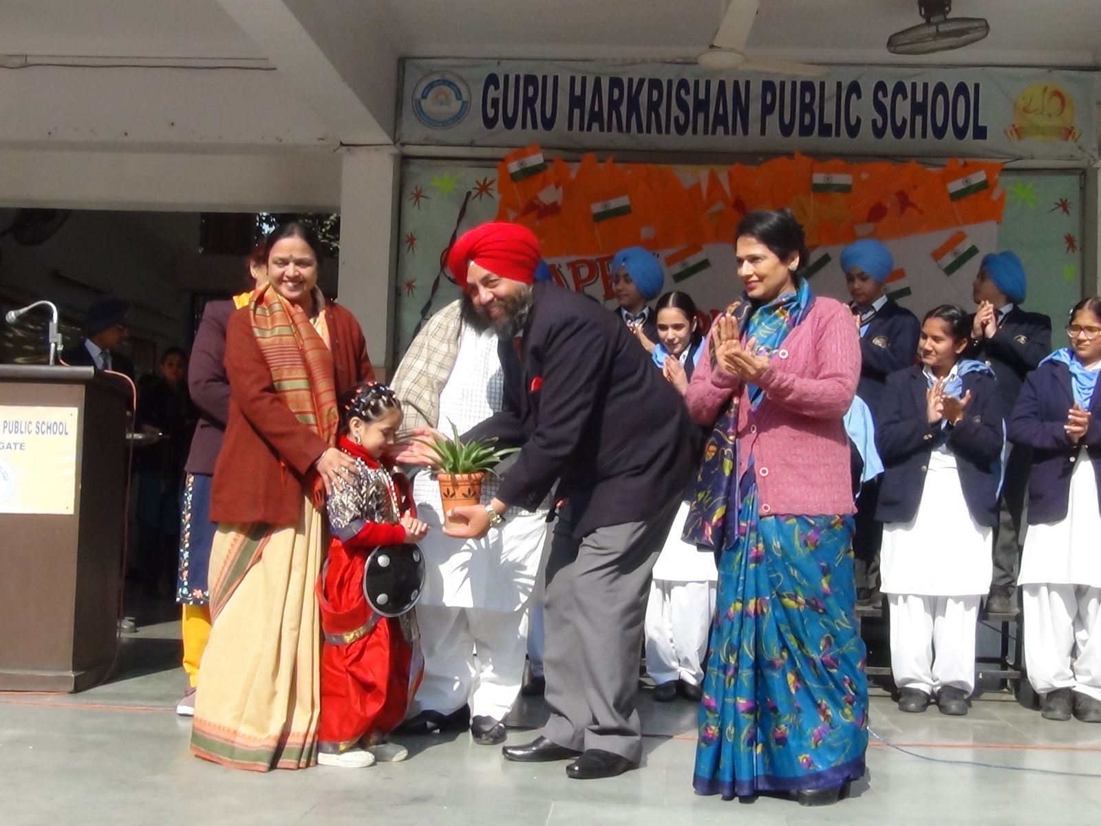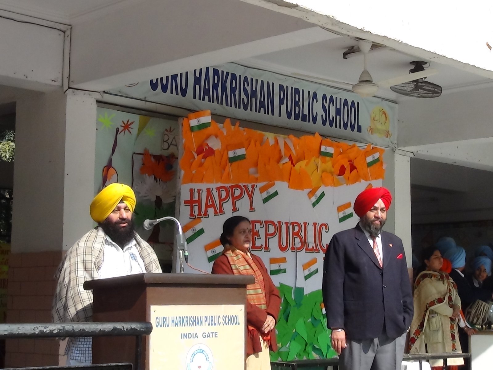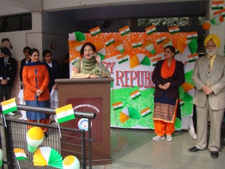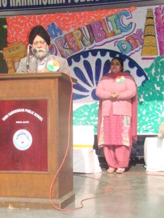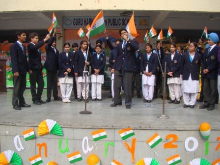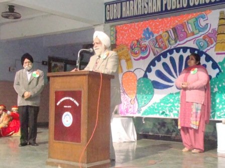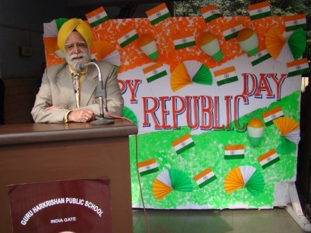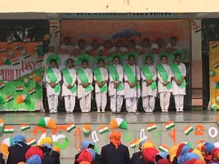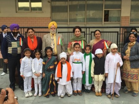 Republic Day Celebration was held on January 28, 2015 in the school premises. School chairman S. Balbir Singh Kohli and Manager S. Kulmohan Singh presided over the function. After the school Shabad, the Tricolour was unfurled by the distinguished guests. School Vice Principal Mrs. Harpreet Kaur and headmistress Mrs. Gurmeet Kaur Virdi florally welcomed the guests. Patriotic song and talk on Republic Day inspired students towards national harmony. A presentation on Fundamental rights was appreciated by everyone. The highlight of the programme was a melange of dances of states of India by the primary segment of the school. The Chairman and Manager of the school motivated the students to be dedicated citizens and true patriots through their speeches on the occasion.