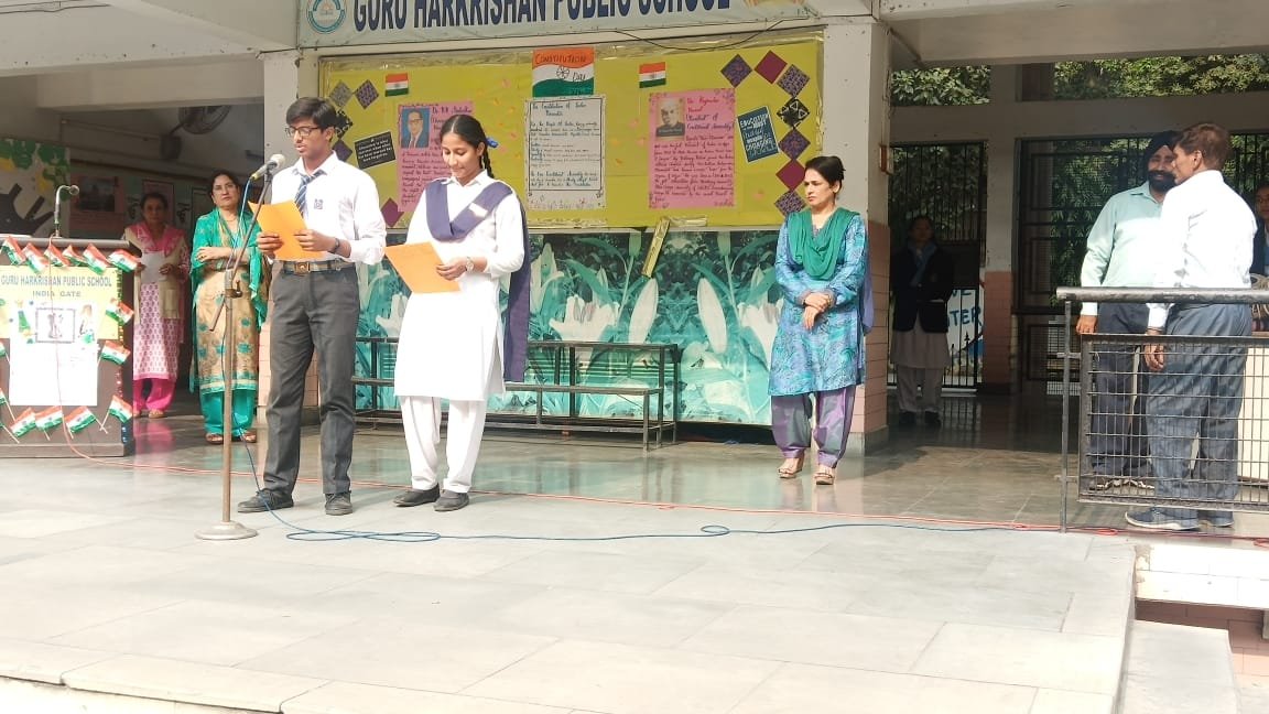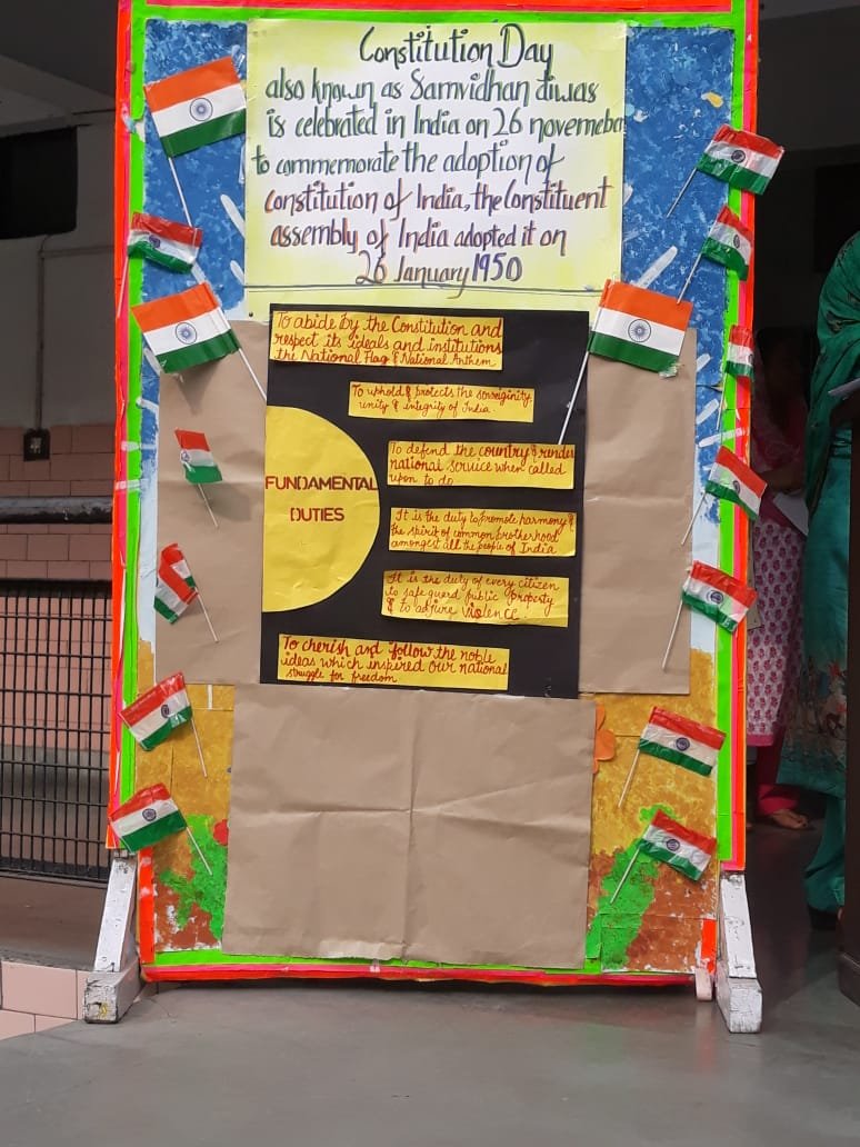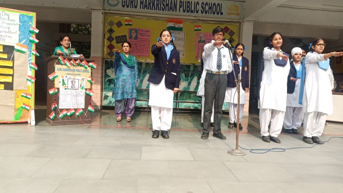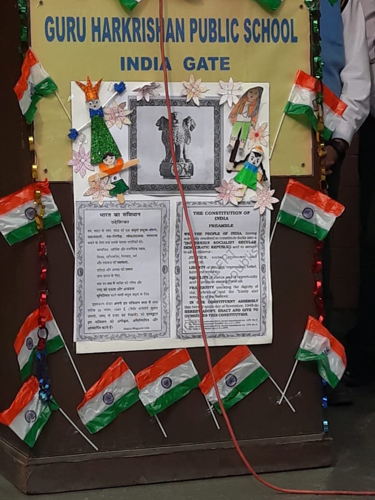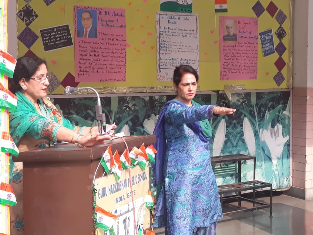 The Constitution Day of India was celebrated in the school premises on 26 November 2019 in all its solemnity. It was marked by the conduct of a special assembly by the students of the school. The celebration started by invoking the blessings of almighty. Varisha of class 12 apprised the students about the significance of the constitution and the preamble to the students. It was followed by an oath on preamble taken by the students and administered by the Principal Ms. Mandeep Kaur. The Assembly ground echoed with words “we the people of India………”. Then came the culmination of the ceremony- a speech on our constitution which took us on a journey of our constitution from history to its present day form and its vital role to bring together and an idea called India.
