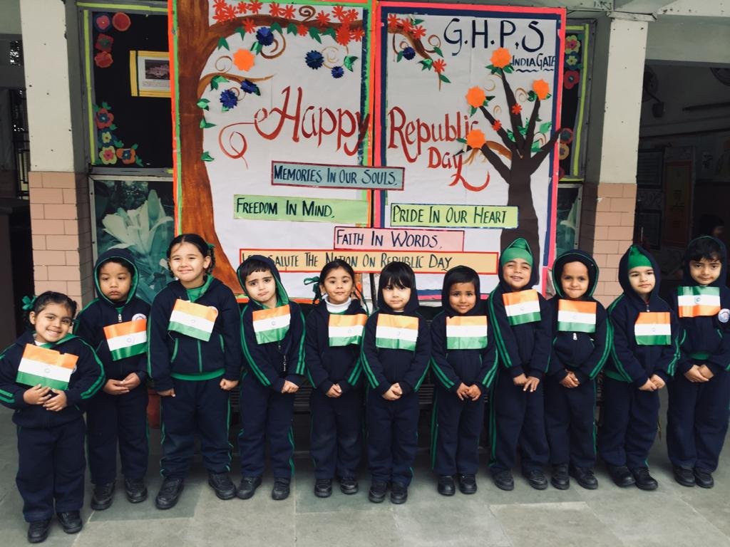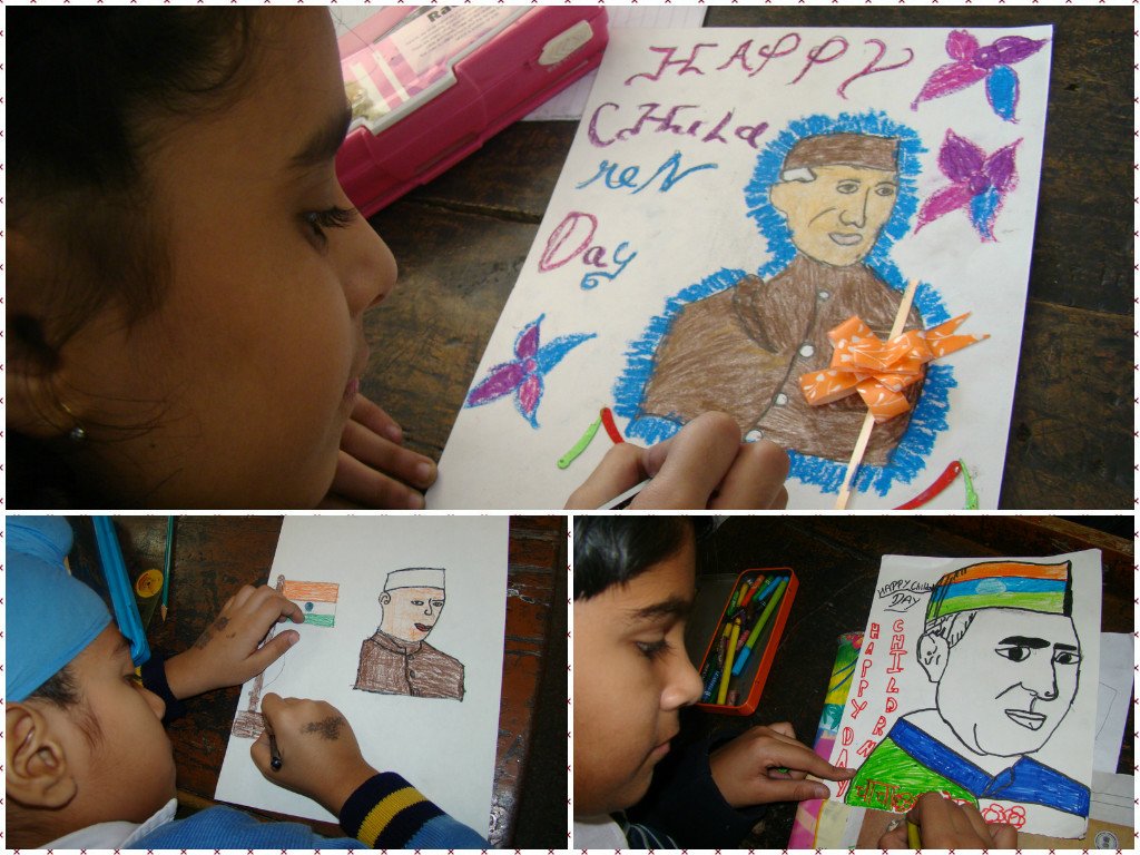 Children,s Day was celebrated with great fervors at G.H.P.S. India Gate on 14 Nov 2014. Students from classes Pre Nur to V participated enthusiastically in a variety of programmers fancy dress , Painting activity , poetry recitation and Folk dance. A short biography of Chacha Nehru was given to all students and the young artists tried their hand in making a portrait of Pt. Nehru.