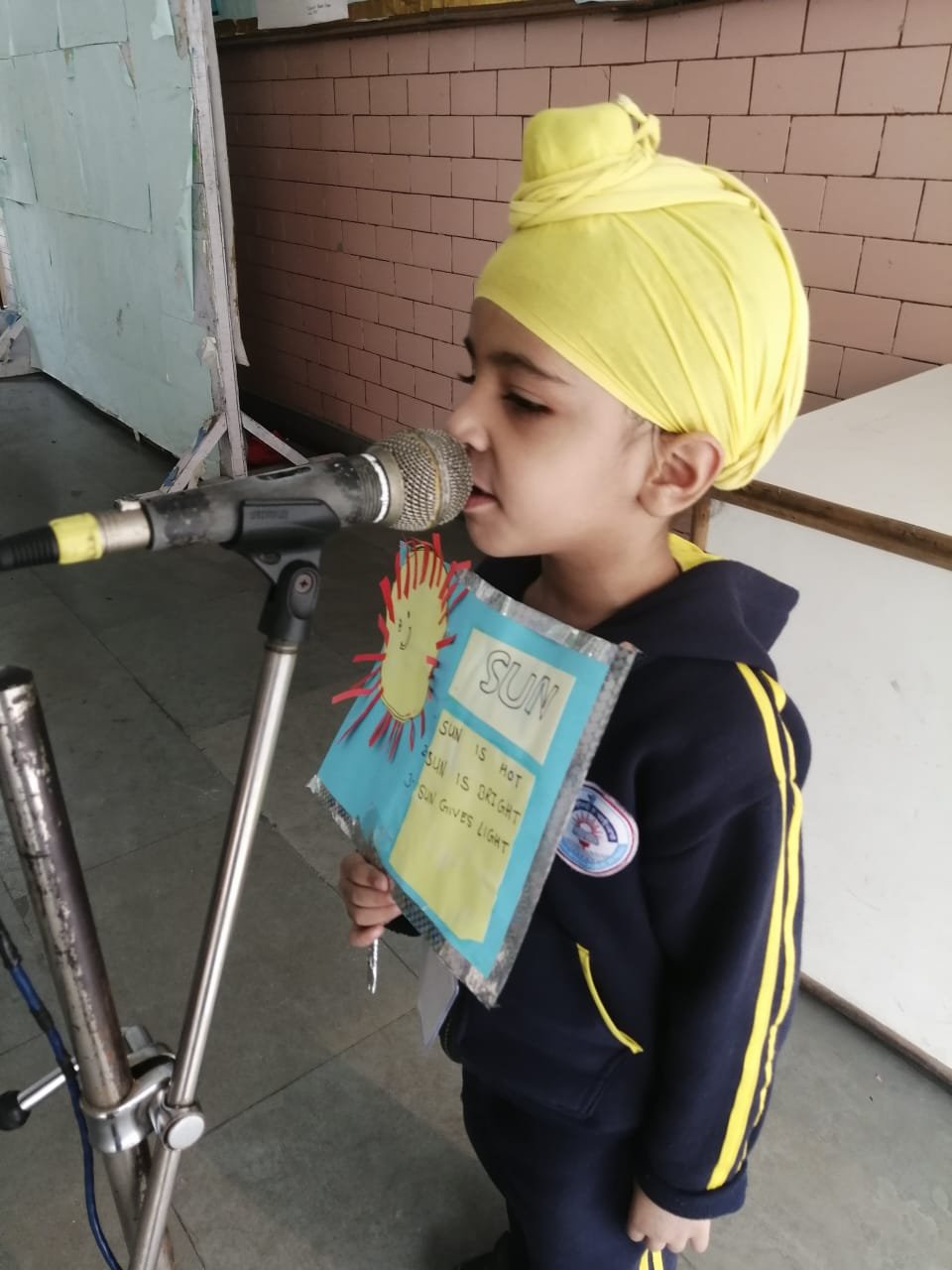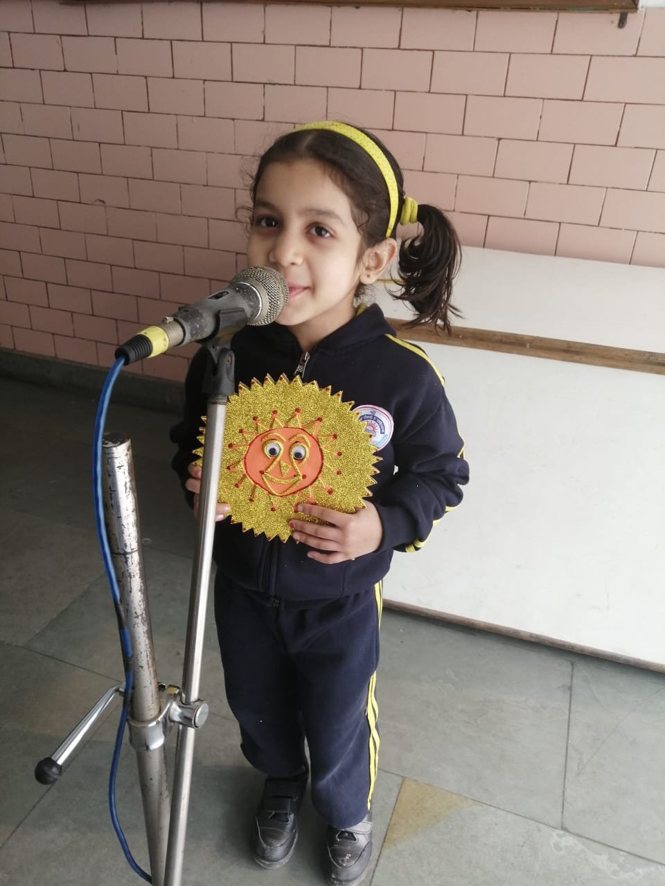 An activity was conducted on 28.11. 2019 by the students of class Nursery. They recited a few lines on the topic The Sun using props and were very excited to speak over the mike.