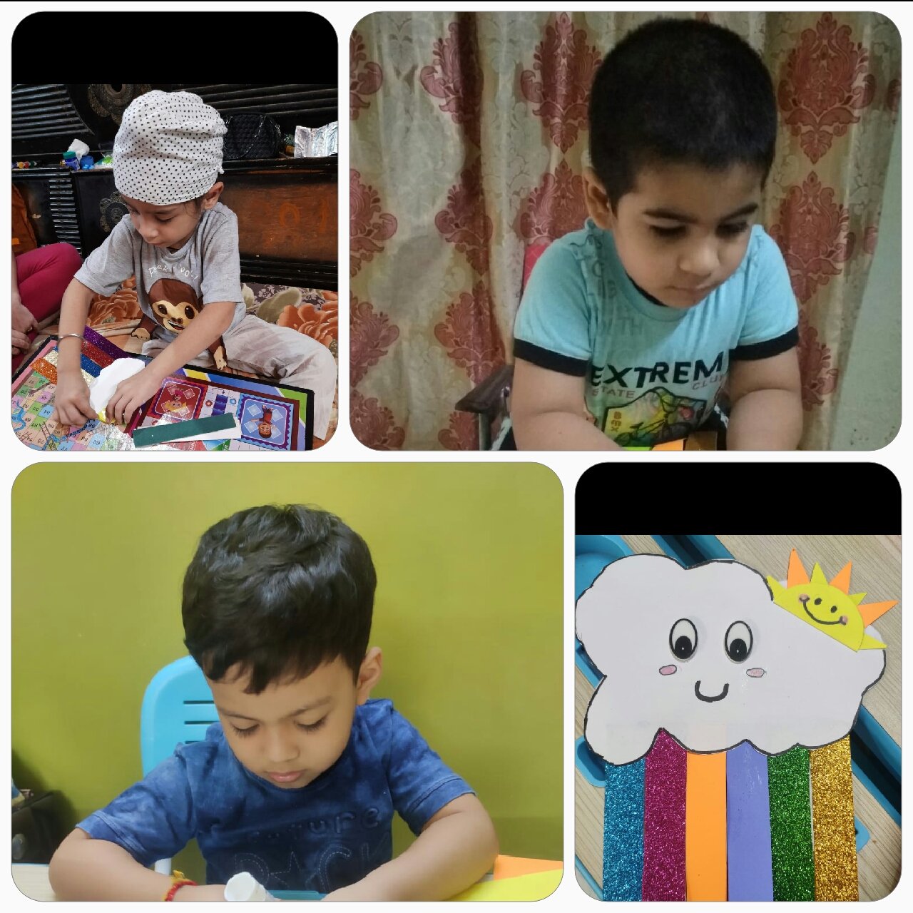 Students of Nursery enjoying activities at virtual classes. They are doing their work with such conviction.