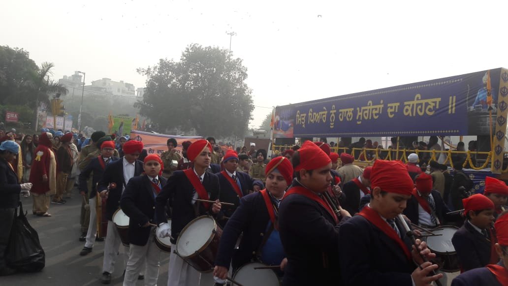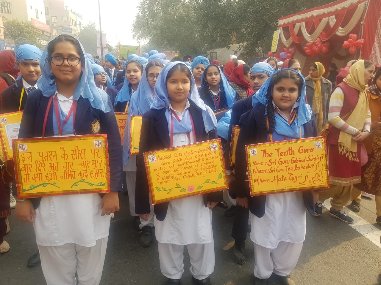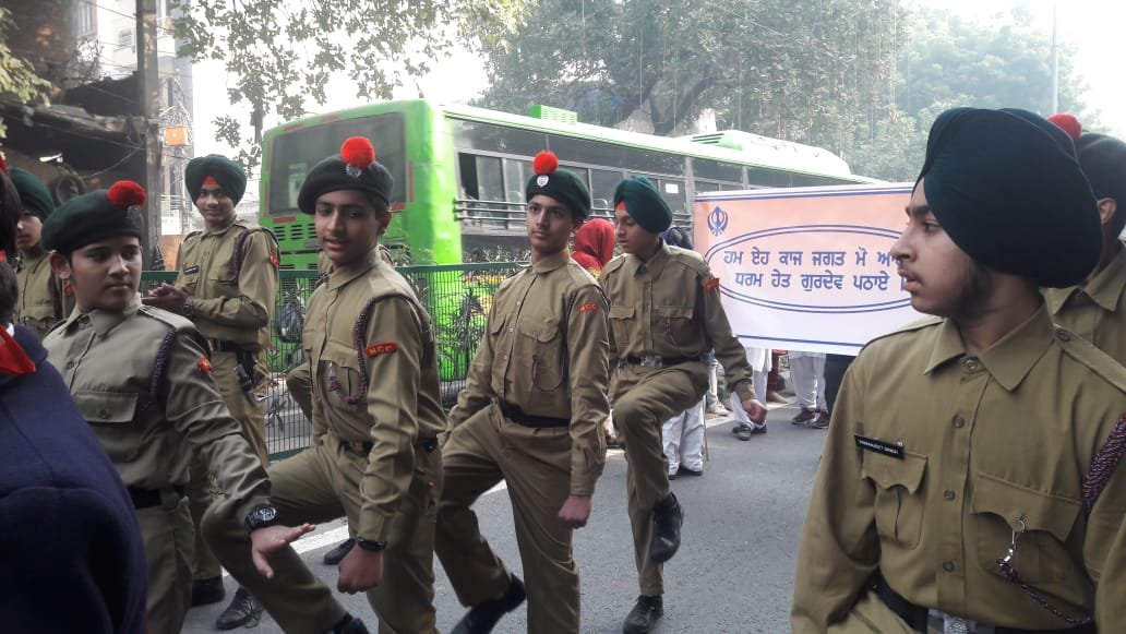 Shri Guru Teg Bahadur Nagar kirtan, the religious procession, under the aegis of the Delhi Sikh Gurdwara Management Committee, was organised on Wednesday 1 st December 2019. The Nagar Kirtan commenced from Gurdwara Sis Ganj Sahib, Old Delhi and terminated at Gurdwara Rakab Ganj Sahib, New Delhi. All the branches of GHPS and other Sikh schools were part of this religious procession. Class 10 students and prefects of classes 11 and 12 of our school marched in the Nagar Kirtan Engulfed with festive gaiety, the students and teachers travelled a few kilometres across the city carrying placards with different slogans to save Mother Earth and teachings of Guru Ji.