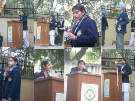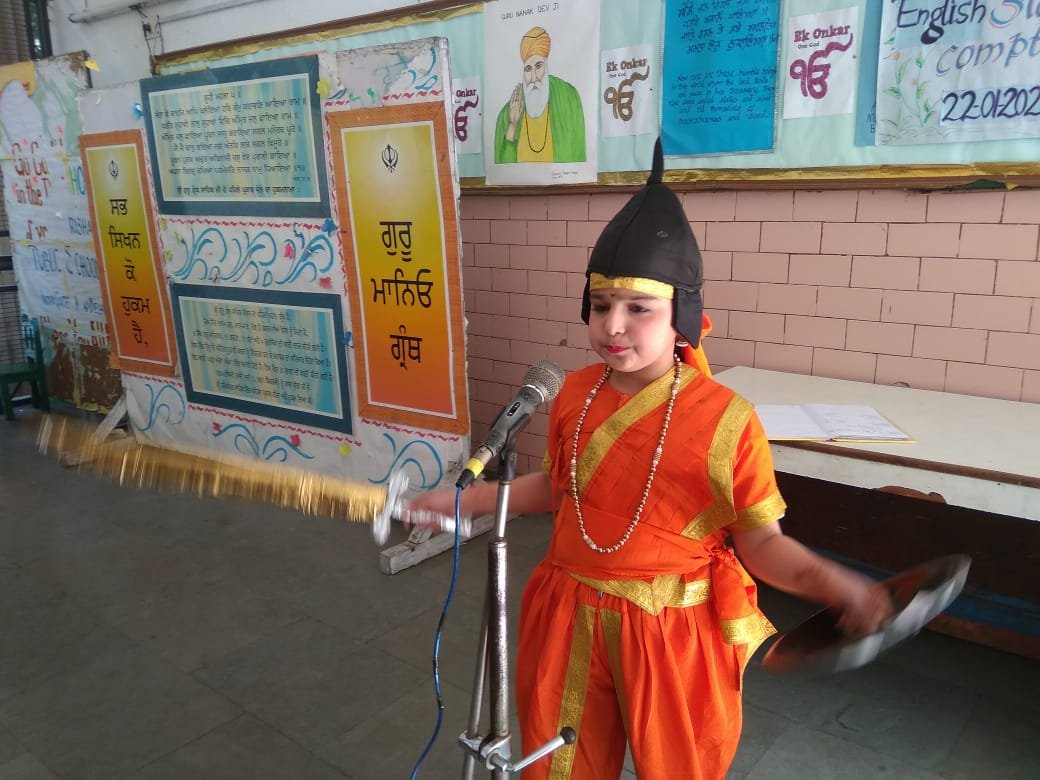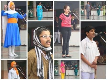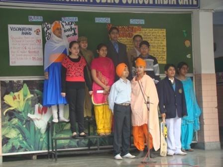 Sakhis are real life incidents from the lives of the Sikh Gurus which impart a divine moral teaching .An Inter House Sakhi Competition was held in the school premises on 29.1.2014 for classes IX - X. The participants took inspiring Sakhis from the life of GURU NANAK DEV JI, GIRU TEGH BAHADUR JI AND GURU GOBIND SINGH JI. Through these recitals the participants not only threw light on the life and teaching of our Gurus but also inspired the children to follow their path in their daily lives