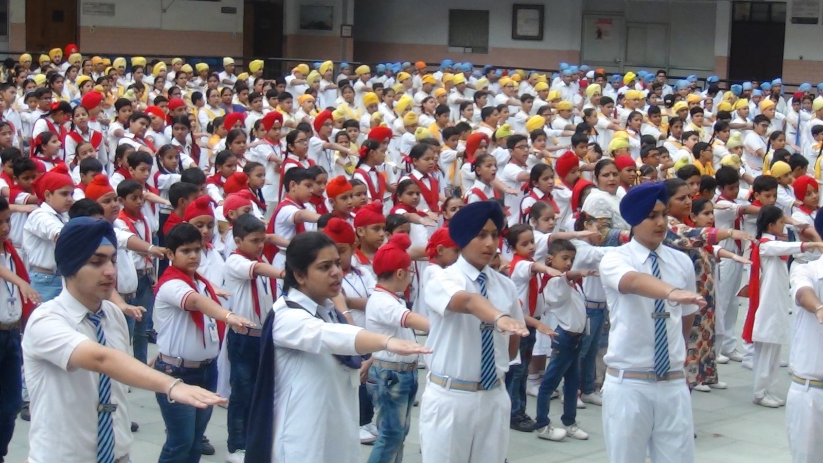 Total of 5,500 students of Guru Harkishan Public School branches run by Delhi Sikh Gurdwara Management Committee formed human chain at the 2.3 km outer radius of India Gate on September 21st 2019 on the occasion of 550th Prakash Purab of Shri Guru Nanak Dev Ji. Students of classes 6 to 10 belonging to different religion, caste, creed from all branches of Guru Harkrishan Public Schools formed the human chain to spread awareness about the 550th Prakash Purab. They promoted ethos and supported new traffic rules under the amended motor vehicle act. They also spread gender awareness about the Gurbani teaching on dignity of women, water and Environmental preservation.