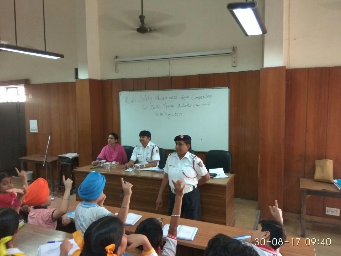 Guru Harkrishan Public school , India Gate : with an objective to promote road safety among the people, the school organized a plethora of activities. A special assembly was conducted showcasing various activities which included role play, reciting poems, speeches etc. A play done on road safety by the students of middle segment was truly inspirational . It had a relevant message in the present day that people should believe in important of life, hence road safety rules should be followed. Jumping traffic signals, road rage, not wearing helmets, under age driving , over speeding, drinking and driving all the issues raised in the play were an eye opener . Students interviewed atleast one hundred people based on a questionnaire. Placards were made to sensitize people on road safety . Power Point Presentations were made by the students. Slogan writing activity was conducted in the classes raising voice on road safety . Participation of students in a host of activities enhanced the perception of students about road safety that need immediate attention.