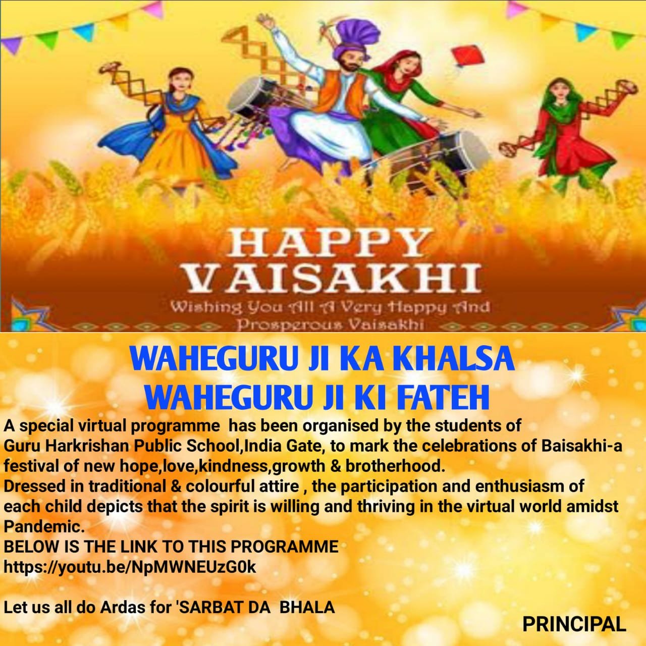 Baisakhi is celebrated in the school premises every year with great religious fervor. However, this year, due to the coronavirus pandemic, these festivities were shifted online. The school principal, Ms. Mandeep Kaur appreciated the efforts of the students for actively participating in the competition and keeping the religious spirit alive despite the changed situation.