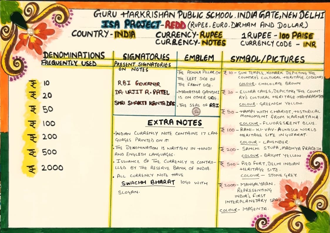The International School Award Project - REDD (Rupee, Euro, Dirham, Dollar) was successfully completed by the students of classes I and II. The project started with an introductory online session in which the students were briefed about the project through PPT.s on the currencies under study. Thereafter, the students did extensive research in groups and find out the denominations, signatories, emblems, pictures / symbols on the understudy currencies. They presented their research in tabular form. Students were able to solve the worksheets on their own. Online jigsaw puzzle competition 'Sabse Bada Rupaiya' was conducted where students participated exhibiting lots of fervour and endeavour. Overall, it was an enlightening and informative journey for the students of Class I and II.