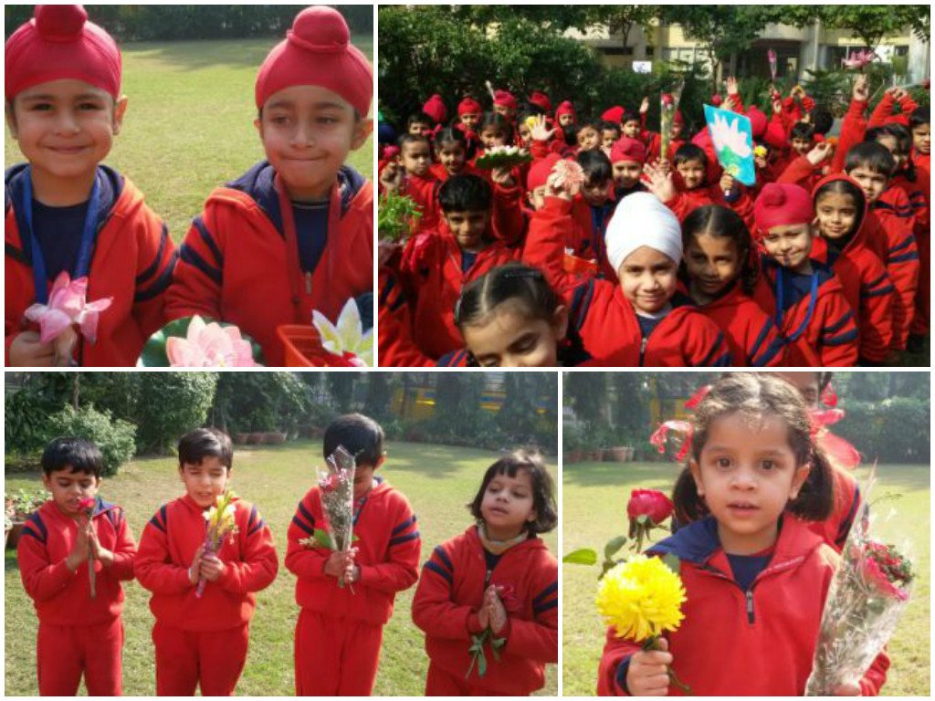 On 16 January 2015 students of Nursery celebrated Flower,s Day under the project of Blooming Flowers. Children brought various types of flowers & they spoke a few lines on the flowers which they had brought. They were taken to the school garden where the school gardener showed them beautiful flowers. Students were very happy to see the vibrant colour of flowers. He also answered their sweet little queries. The concept was reinforced by the teachers through rhymes that how a sapling turns into flower. It was an activity they enjoyed thoroughly.