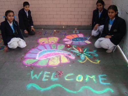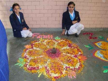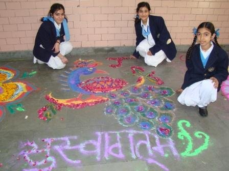 Inter House Junior Segment Rangoli Making Competition was held 9 December 2015 classes III,IV and VI were participated. Students made beautiful Rangoli designs and decorated them with flowers, diyas and other decorative materials. The colour scheme which they used was excellent. It was very eye pleasing Students of Baba Zorawer Singh House bagged the 1st Position and 2nd Position was given to the Baba Ajit Singh House. .