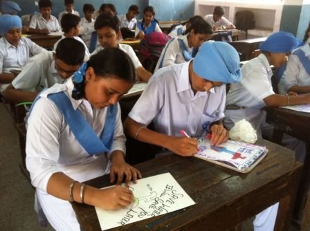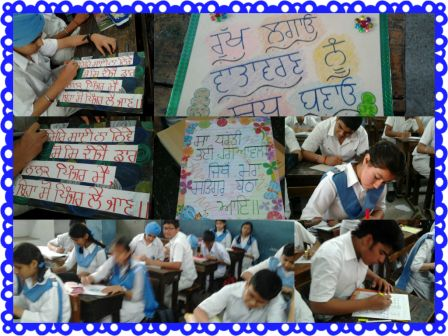 An Inter-house Slogan Writing Competition was organized in the CCA period on 16 April 2014. Topics for the competition were Gurmukhi Lipi , environment and Bani of Guru Angad Dev Ji. The students of classes IX and X exhibited their talent through their art work and quotations from the topics given.