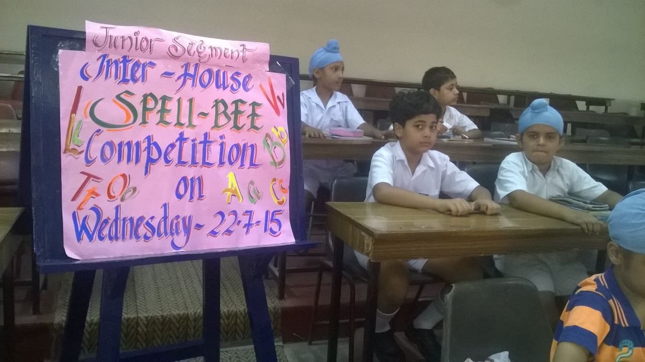 Junior Segment Inter House English Poetry Competition was organized on 28.10.15 students of classes III, IV and V participated. Students were well prepared for the Competition Different themes was chosen for the recitation Competition. Pawanjeet Singh of Class V from Ajit Singh House bagged 1st. Position. 2nd Position was given to Jasleen Kaur from Baba Fateh Singh House. Prisha of IV-B got 3rd Position from Baba Fateh Singh House.