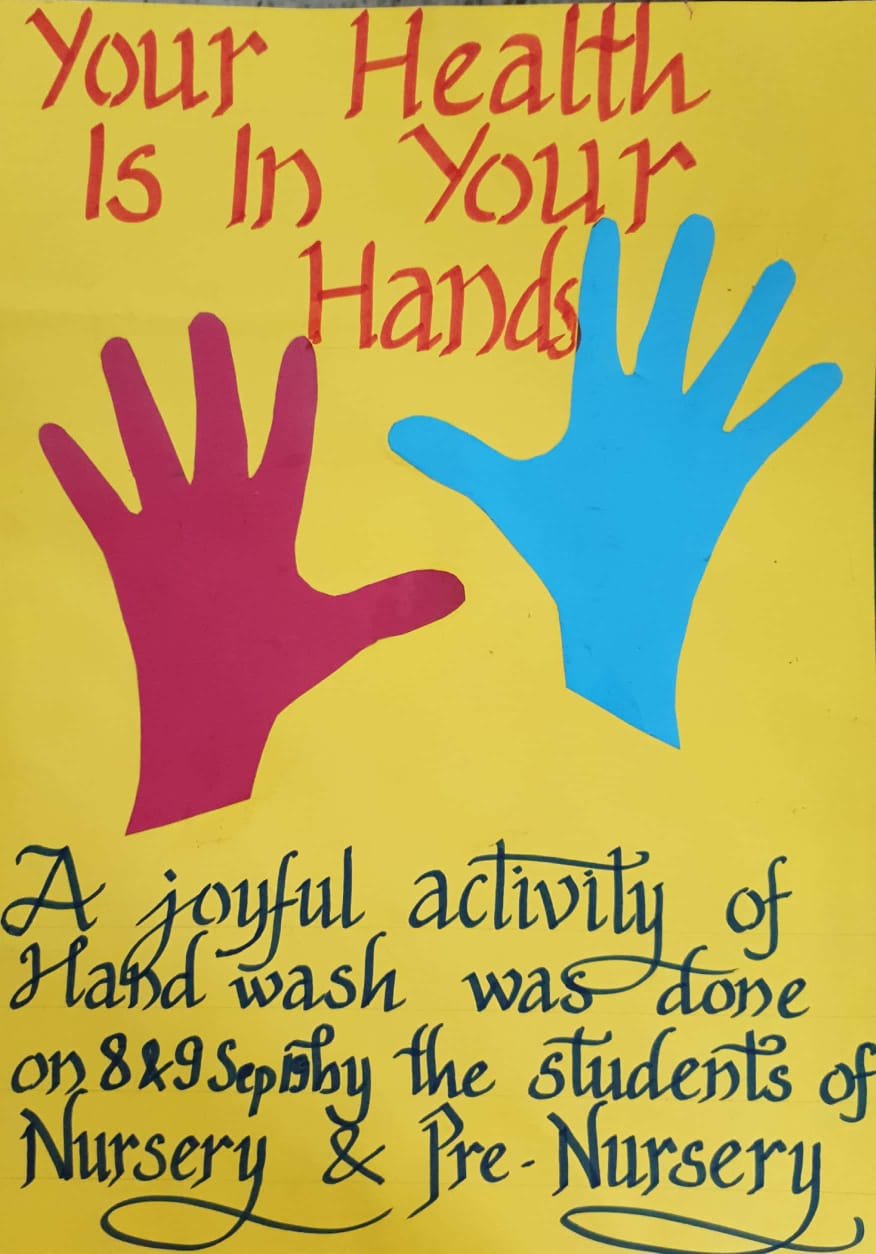 Hand wash and personal hygiene day( 9Sept 2019) Regarding the observance of swachhta pakhwada, many inter- house activities like painting competition, essay writing competition ,slogan writing, Poem writing on the theme of swachhta were conducted in classes III to VIII by the school. The school organised Handwash Day in primary segment to sensitise the students about the importance of handwashing. Students were motivated to make hand wash a habit and lead a healthy and better life. Activities were also conducted in the primary segment regarding personal hygiene.