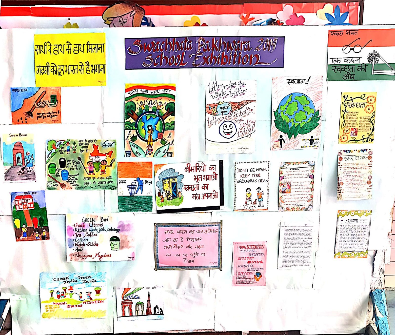 Swachhta School Exhibition and Action Day ( 11 Sept 2019) Students made useful items using waste material in their work experience activity and exhibition displaying photographs on swachata activities like painting, slogan writing, essay writing by the students