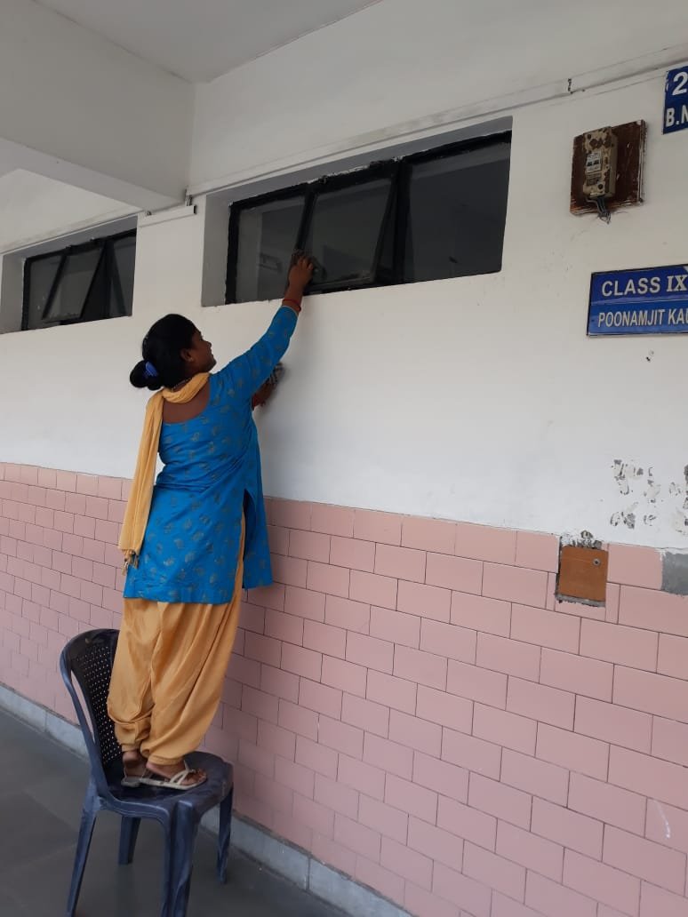 Swachhta Awareness Day (3 Sept. 2019) special drive for cleanliness was carried out by extensive cleaning of toilets, classrooms, fans, windows etc. in the school premises.