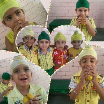 On 30th July 2014, Pre- Nursery and Nursery Class students celebrated Mango Day in school premises. All the children were dressed in yellow. They spoke a few lines on mango and recited English and Hindi rhymes. The children enjoyed different flavours of mango. We were also joined by our ancestors (the monkeys!!!) who also feasted on the sumptuous mangoes. The school Principal, Mrs. D.K. Dhingra also joined in the celebration.