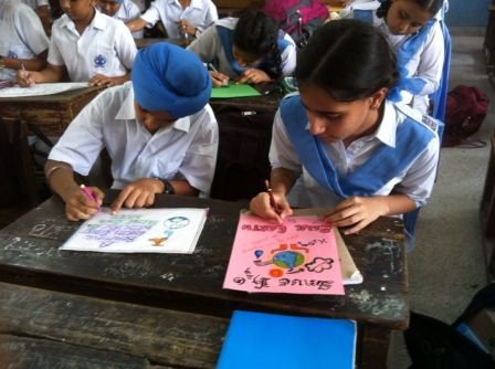 Inter House Poster Making Competition for Junior segment was organised on 19 Aug 2015 in the school premises. The theme were Mere Sapno ka Bharat Classes III to V participated. They drew their beautiful ideas portraying future India on the posters with this they have shown how our country should be in future. Prisha Rana of class IV B from Baba Fateh House bagged the 1st position was won by Amandeep Kaur of class IV D from Baba Zorawar Singh House. Aanya of Class IV C from Baba Ajit Singh House got 3rd Position .