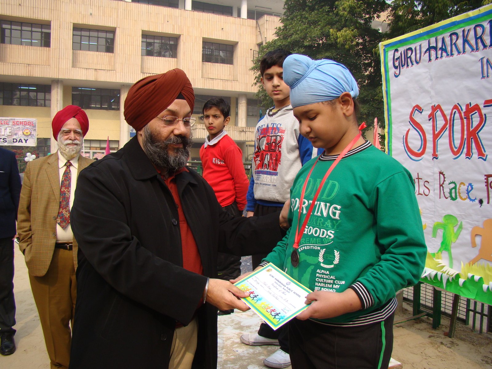 The highlight of the day was Aerobics showcasing the latent talent of our flying acrobats. Karate student enthralled the audience with their spectacular feats like self-defense by girls and tile breaking by boys. Tiny tots captivated the hearts of all through their mesmerizing performances. S. Manjeet Singh Ji G.K inspired the budding athletes with his encouraging words. He stressed integrating sports with academics laying emphasis on sportsman spirit and healthy competition. The Chairman of the school S. Balbir Singh Kohli and the Manager S. Kulmohan Singh also encouraged the students and highlighted the importance of sports in the school curriculum. The programme concluded with a Vote of Thanks proposed by the Principal of the school stressing sports as a striking feature for the holistic development of the students.