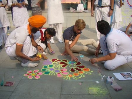 The day began with a special morning assembly in which our students put up various cultural items and a speech on Delhi and its Monuments. The young Germans participated enthusiastically in school activities like Rangoli Making and interaction with students. They were taken sight seeing to National Gallery of Modern Art , Bangla Sahib Gurdwara and Baba Baghel Singh Museum . They not only had Guru Ka Langar at Bangla Sahib Gurdwara but also offered their services in community kitchen. Together with their partners, they had an experience of a life time .