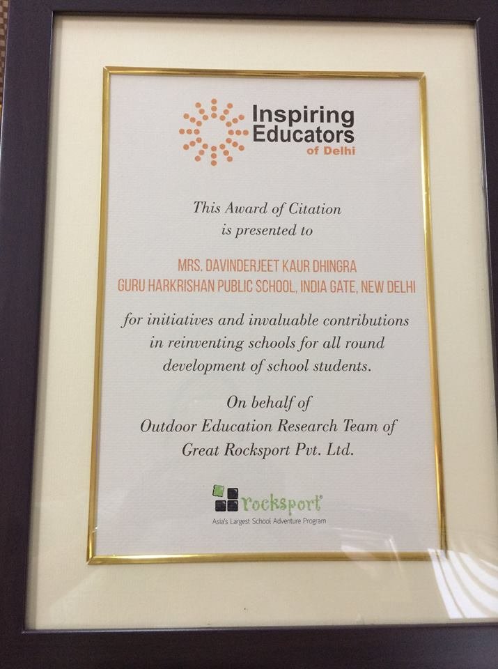Principal, Ms D K DHINGRA has been honoured and appreciated by National Mathematics Olympiad 2017-18 with Best School Award for her significant role in motivating participants for excellent performance in the NMO Contest 2017-18.