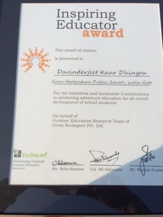 GHPS India Gate , has been adjudged as the best school for Innovative Teaching Methodology and conferred with the KAUTILYA Award in a glittering ceremony yesterday in recognition of the unique learning approach adopted by the school Explore, Experiment and Explore- the 3 E,s of learning. The school endeavours to base their educational approach on the motto of the school Vidya Vichari taan paropkari , encouraging the children to reflect upon the knowledge attained and indulge in the walfare of the humanity thus forming a life long learning . The Award was received by the School Principal , Ms D K Dhingra in the august presence of renowned actress and BJP MP, Kiron Kher , Film Director Madhur Bhandarkar , famous singer Monali Thakur and Wrestler Sushil Kumar besides Principals and educationists from over 200 schools.