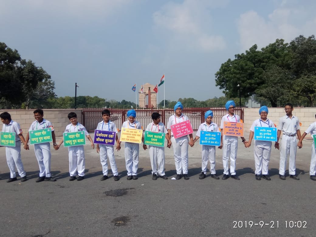 Total of 5,500 students of Guru Harkishan Public School branches run by Delhi Sikh Gurdwara Management Committee formed human chain at the 2.3 km outer radius of India Gate on September 21st 2019 on the occasion of 550th Prakash Purab of Shri Guru Nanak Dev Ji. Students of classes 6 to 10 belonging to different religion, caste, creed from all branches of Guru Harkrishan Public Schools formed the human chain to spread awareness about the 550th Prakash Purab. They promoted ethos and supported new traffic rules under the amended motor vehicle act. They also spread gender awareness about the Gurbani teaching on dignity of women, water and Environmental preservation.