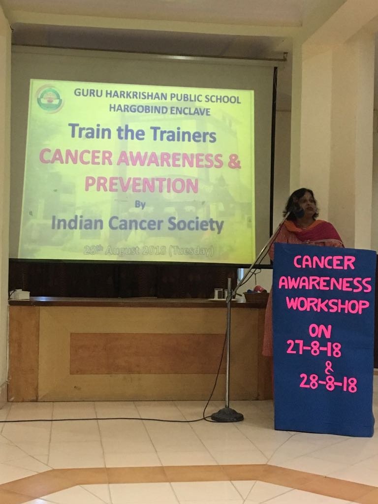 A Training programme on Cancer Awareness and Prevention was organised in GHPS Hargobind Enclave On 27 & 28 Aug 2018. Ms Varsha and Ms Randeep Kaur attended the workshop. Trained resource persons from The Indian Cancer Society sensitized the participants about the causes, ill effects and preventive measures of this dreadful disease.