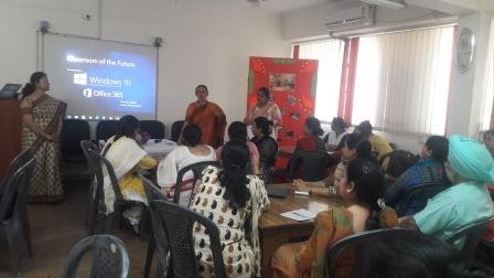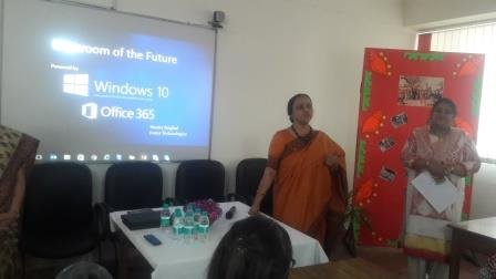 A workshop to equip the teachers for Class Room of the Future was organised in the school Ms Swati (Microsoft)and Ms Seema (Microsoft)were the resource persons. The aim of the workshop was to update the teachers with the use of Office 365 and one note application.